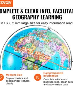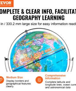 VEVOR 330 мм подсвеченный обучающий глобус с LED, вращение 720°, политическая карта, подставка с USB