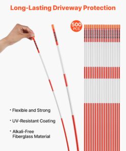 VEVOR 500pcs 6mm x 122cm Reflective Driveway Markers – Fiberglass Snow Stakes with 360° Visibility for Night Safety