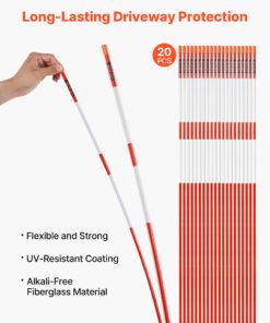 VEVOR 147см стекловолоконные маркеры для проездов, 20шт. светоотражающие снежные столбики с стальными сверлами для парковок и уборки снега