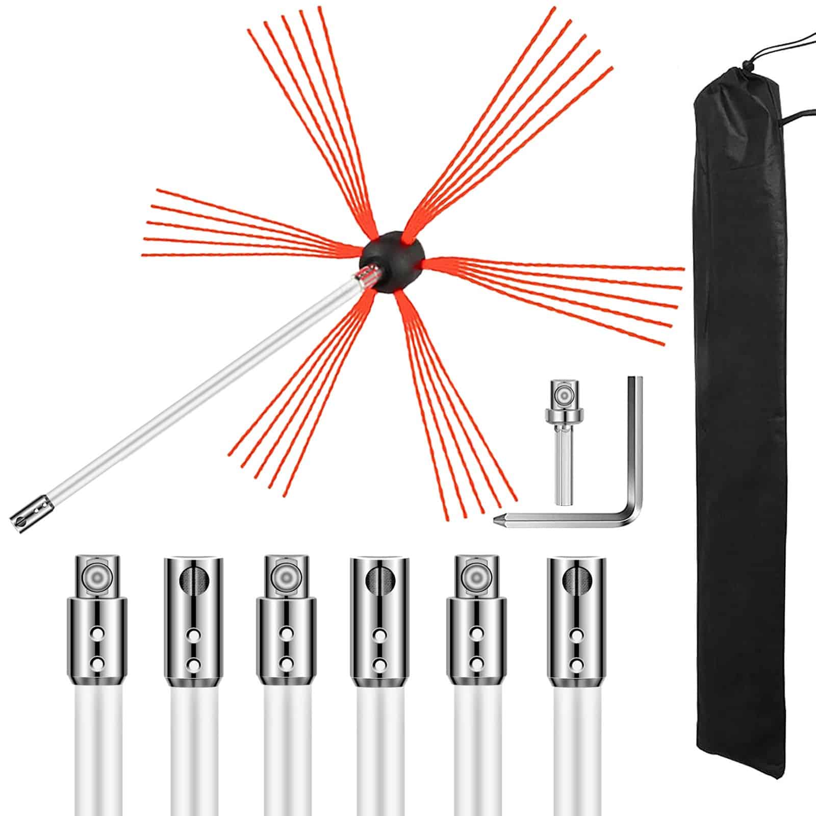 Cleaning your stove by yourself! With this premium chimney sweep kit, you can effectively sweep away soot from bottom up. No ladders needed. The kit contains 7 rods that are easy to connect and detach. The bristles are also stiff and durable for years. You can use it for power sweeping or hand sweeping. Suitable for both metal flues and brick chimneys of different shapes.