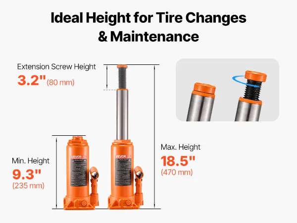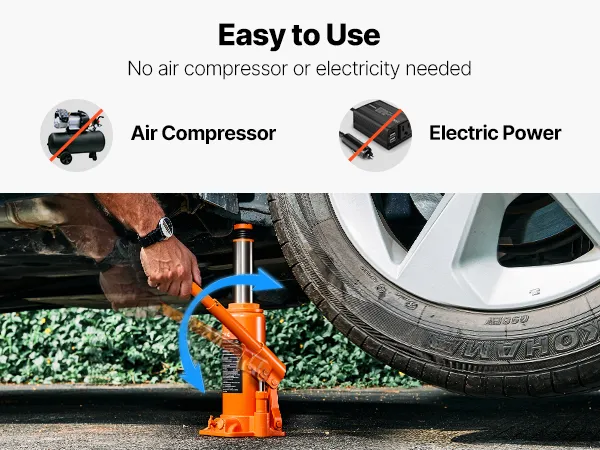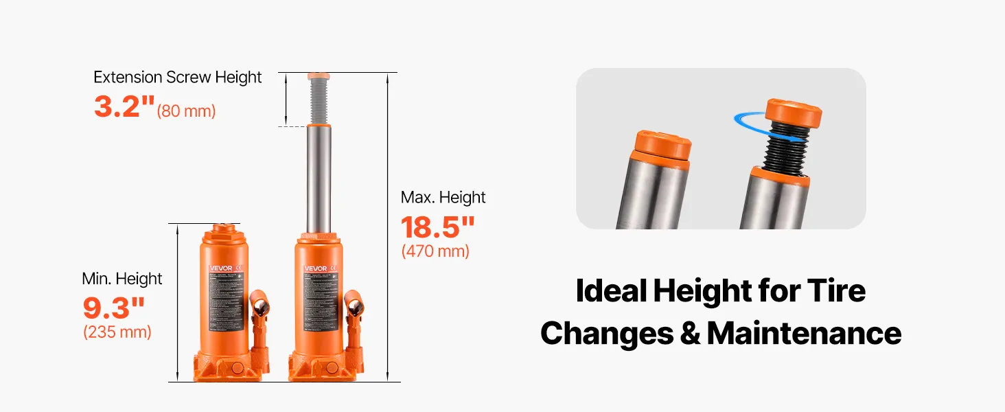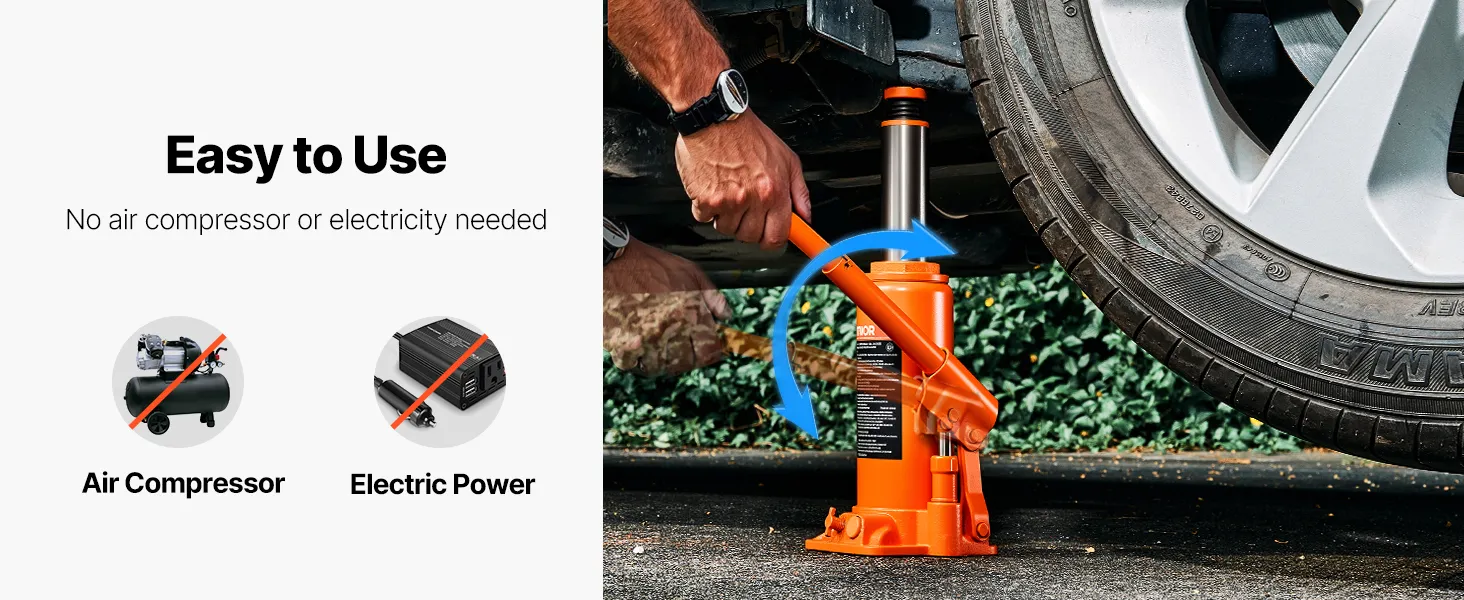 This hydraulic bottle jack uses manual pumping to lift up to 10 tons (22,046 lbs) with steady force—no electricity or air needed. It's a solid pick for heavy-duty jobs around the home, garage, or driveway.
