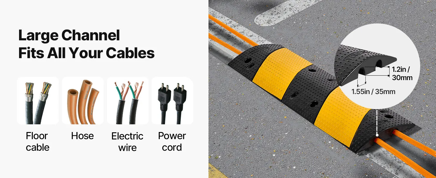 Built from tough, wear-resistant rubber, this cable protector ramp stands up to 22,000 lbs/axle, keeping your cables secure even during peak traffic hours. dual-channel design lets you run two separate cables without tangling, while the expansion screws avoid shifting under heavy truck loads.