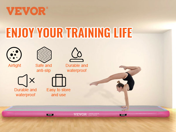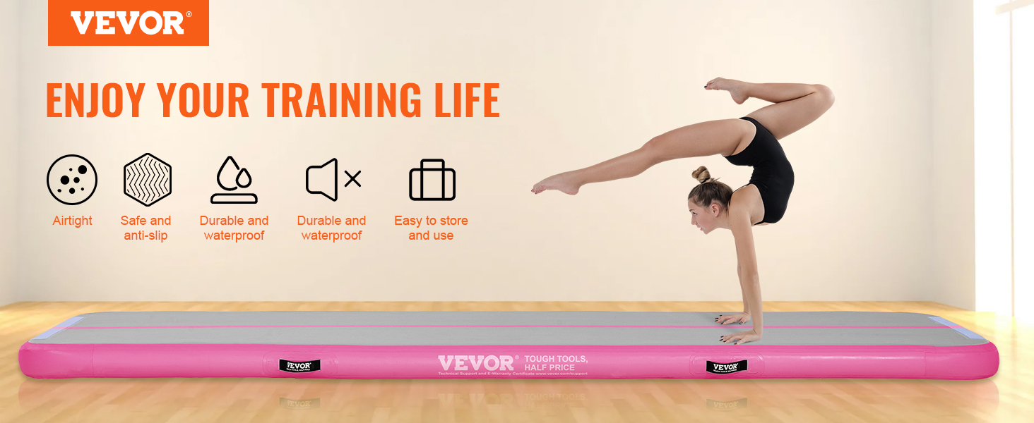 Available in multiple sizes and colors, and easy to assemble. This gymnastics air mat is made from high-quality PVC tarpaulin for enhanced durability.