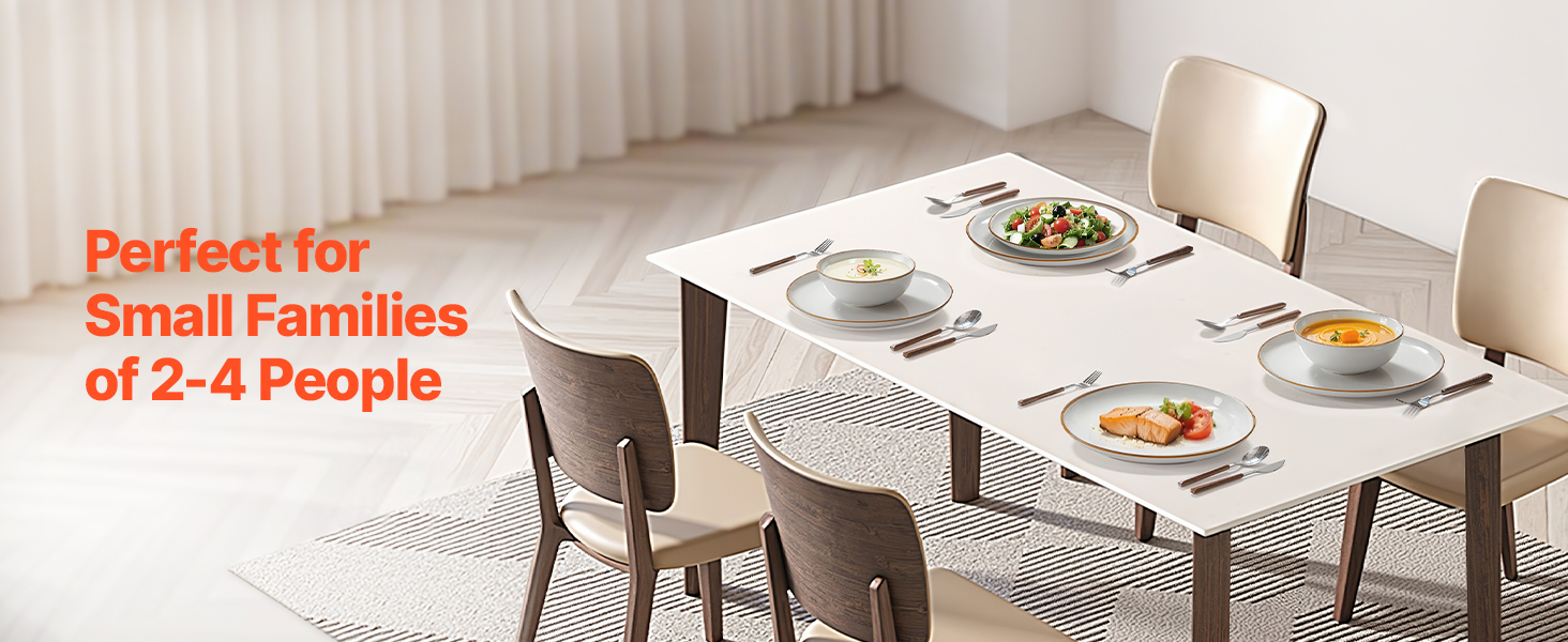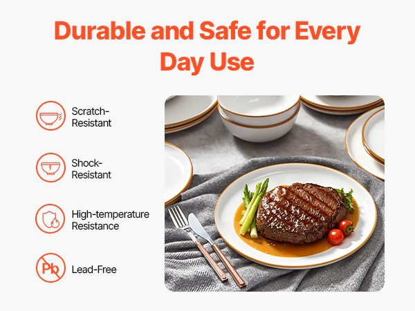 VEVOR Dinnerware Set, Service for 4 People, Round Plates and Bowls Sets, Scratch Resistant Ceramic Dinner Ware, Dishwasher and Microwave Suitable Kitchen Dishes, for Dessert Salad Soup Pasta, White