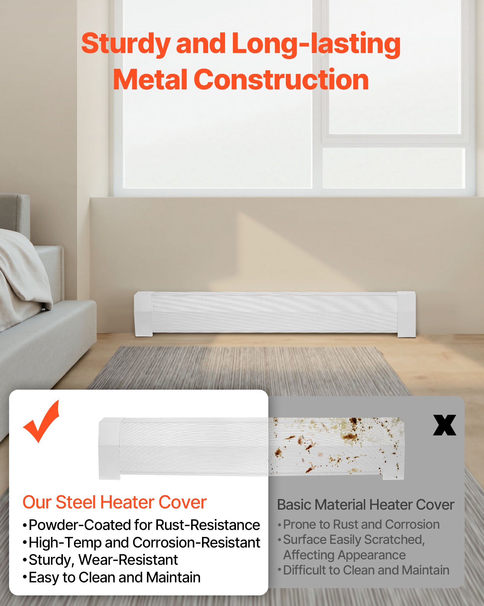 VEVOR Baseboard Heater Covers, Premium Series 1222 mm Standard Electric Heating Unit Front Cover for Home Improvement, Heavy-duty Steel, Easy Installation for Bedroom Replacing Old Cover, White