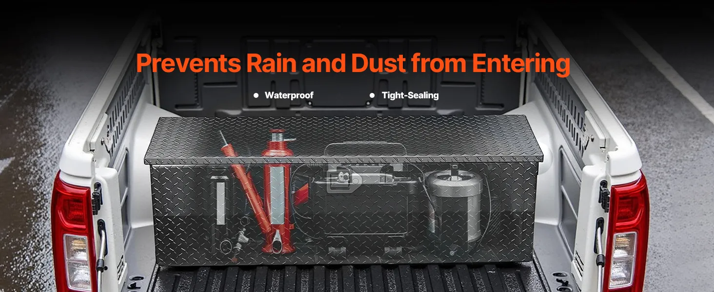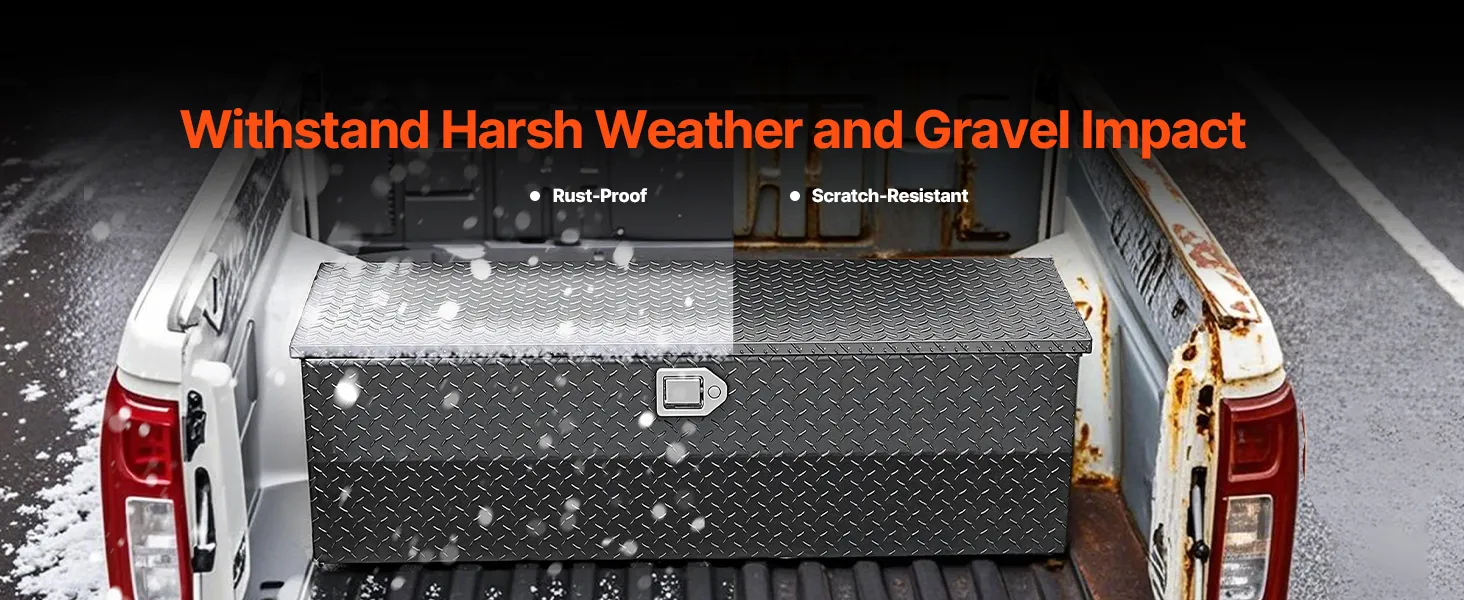 VEVOR Heavy Duty Aluminum Truck Bed Tool Box, Diamond Plate Tool Box with Side Handle and Lock Keys, Storage Toolbox Chest Organizer for Trailer, Pickup, RV, 49"x15"x15"(1244.6x381x381mm), Black