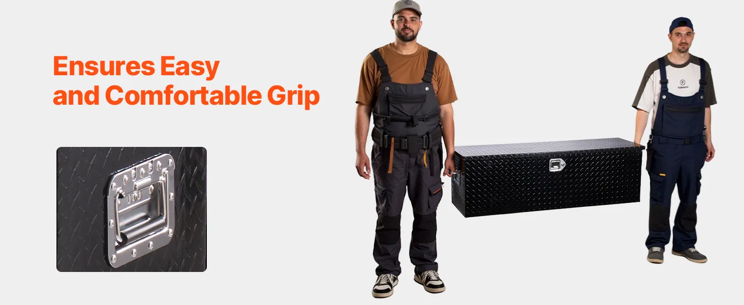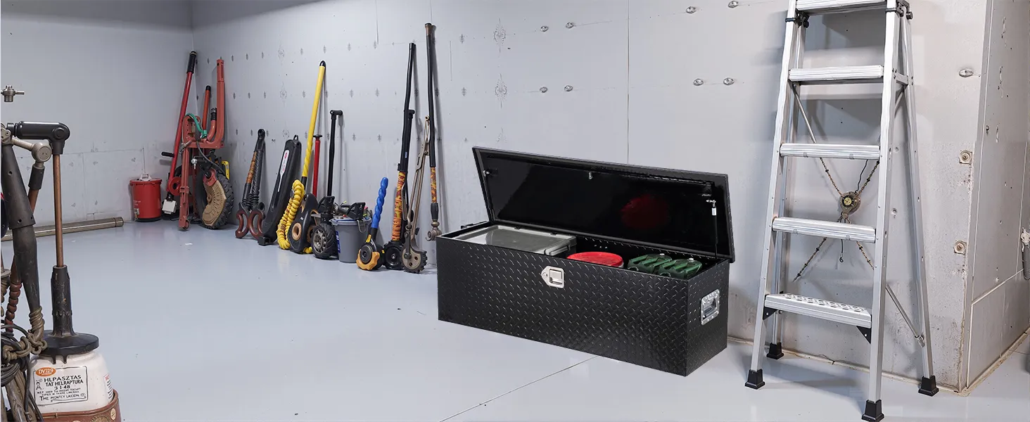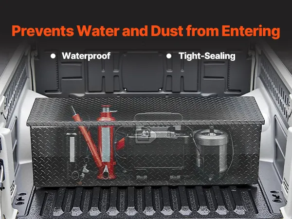 This truck bed tool box has an interior capacity to hold items up to 46.8" (1189mm) long, 13.2" (336mm) wide, and 14.3" (363mm) high. It supports a weight of 220.5 lbs (100 kg), allowing you to store items like a jack, various in-car tools, folding tents, luggage, and more.