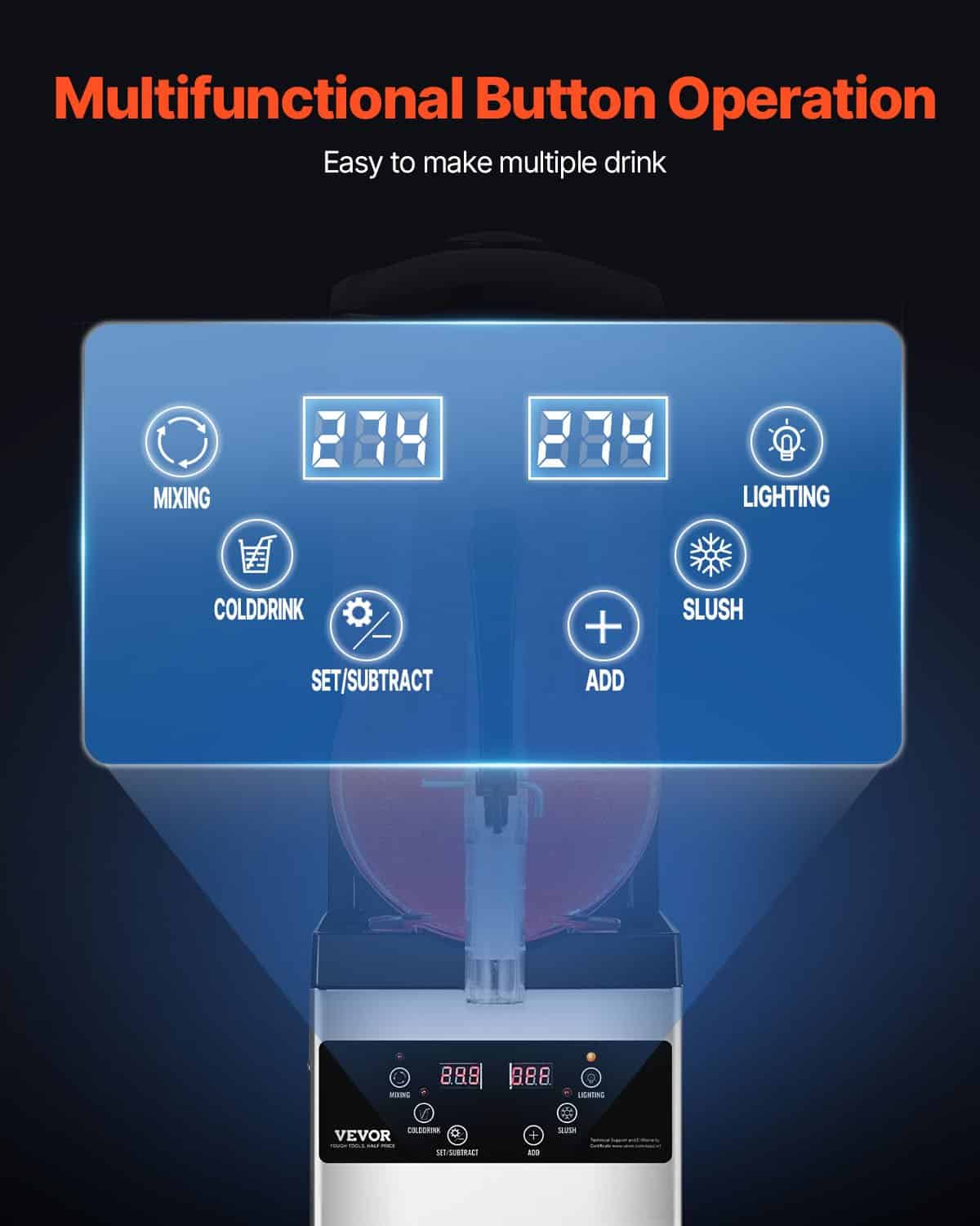 • Durable & Easy to Clean: Made with a stainless steel body and food-grade PC tank, this commercial slushie machine is built to last and easy to clean. The tank features one-button automatic cleaning, and the modular components can be easily disassembled without tools for hassle-free maintenance and cleaning.