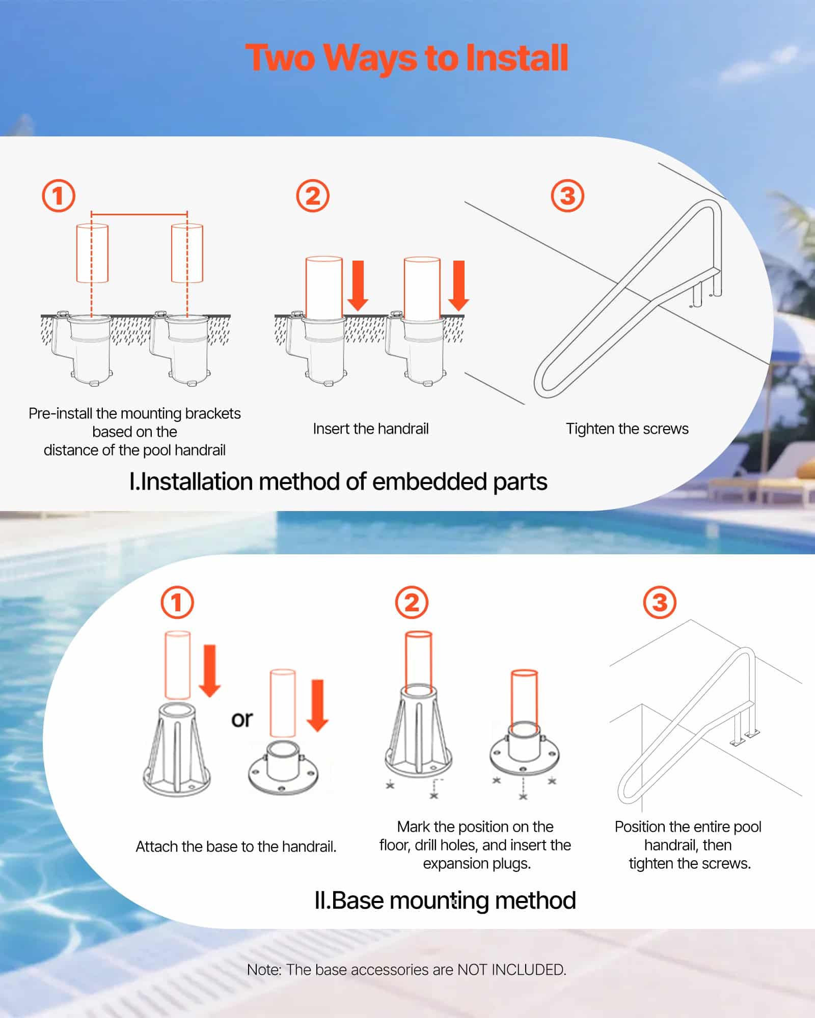 A: Supports inground or surface-mount installation, but the base plate and mounting hardware are not included.