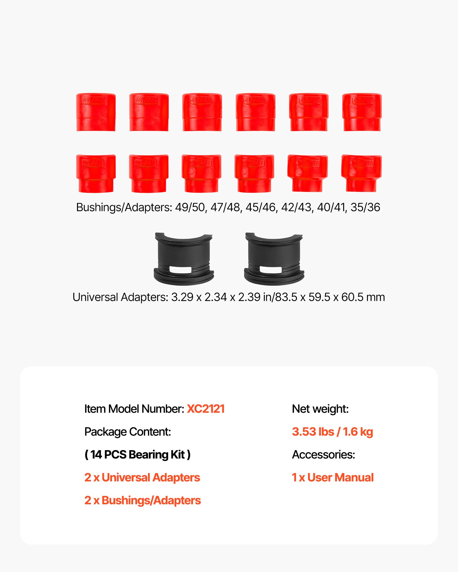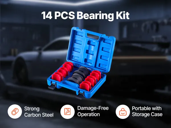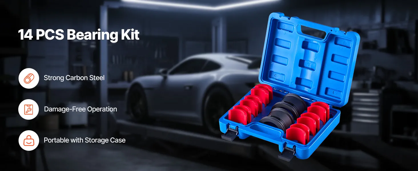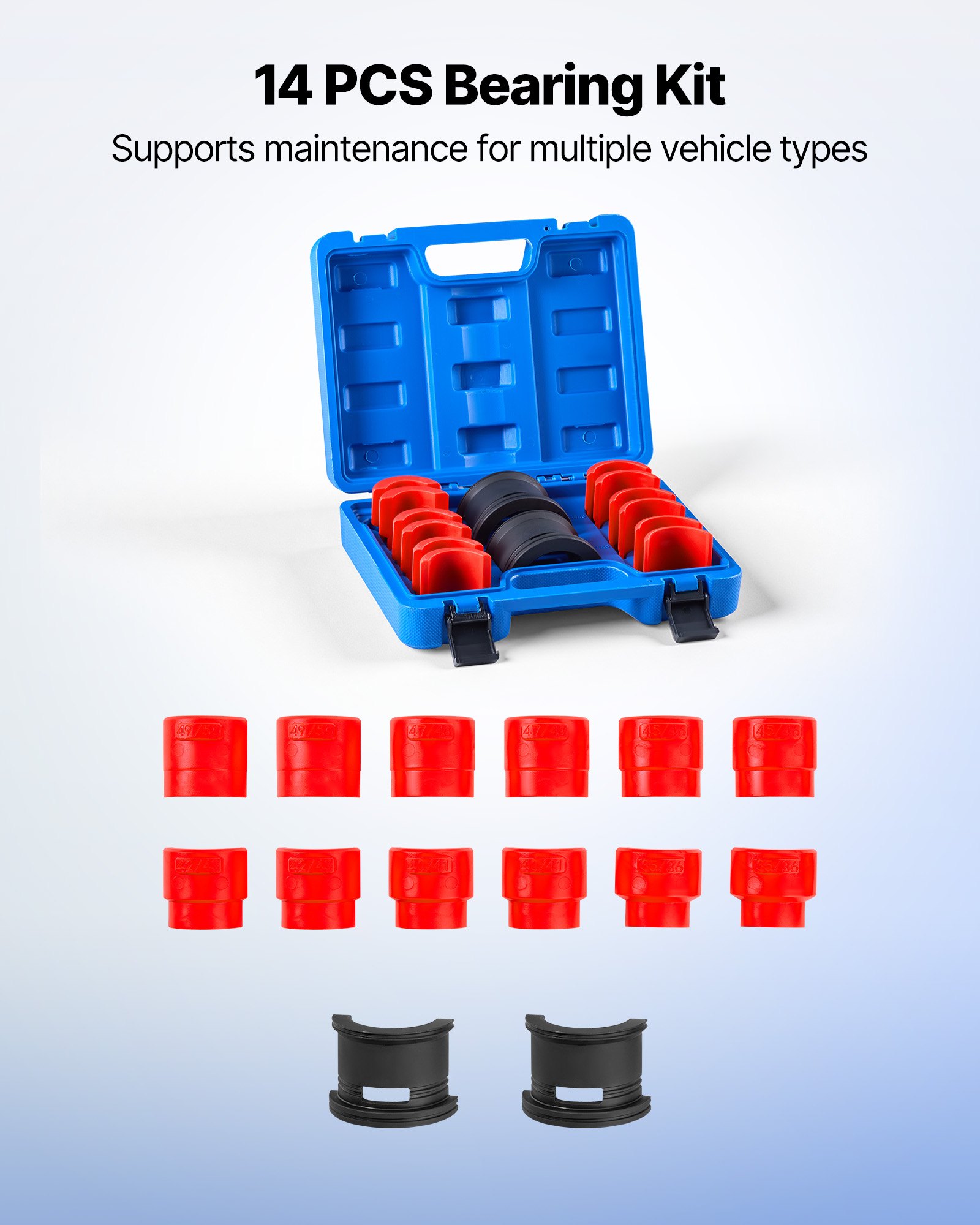 VEVOR Bearing Press Kit, 14 Pcs, Bearing Race and Seal Driver Set with Bushings and Adapters, Bushing Driver Tool Set, Heavy Duty Carbon Steel Seal Removal Installation Tool Kit with Storage Case