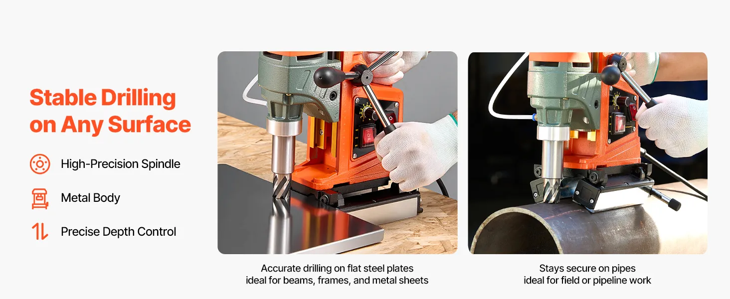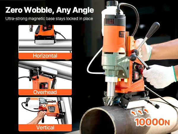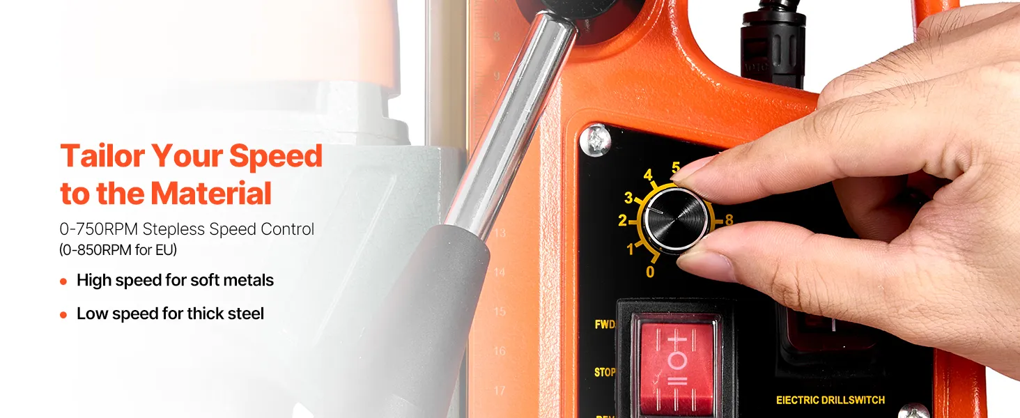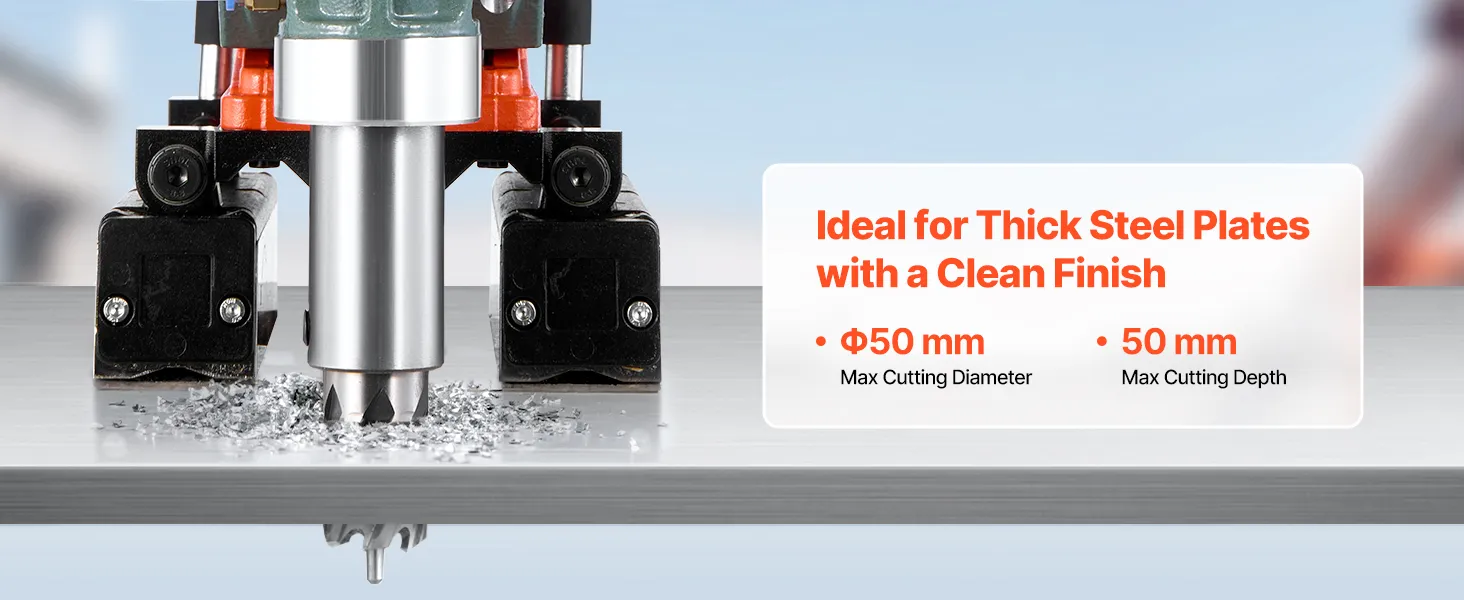 The extended length allows for more precise feed pressure with less physical strain, especially during prolonged or vertical operations. This magnetic drill press is ideal for professionals who demand both accuracy and comfort.