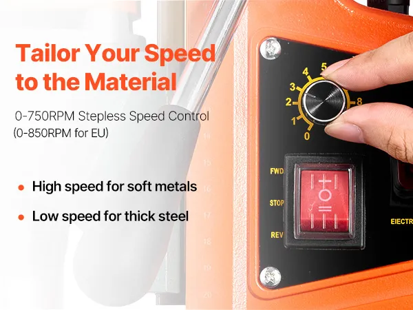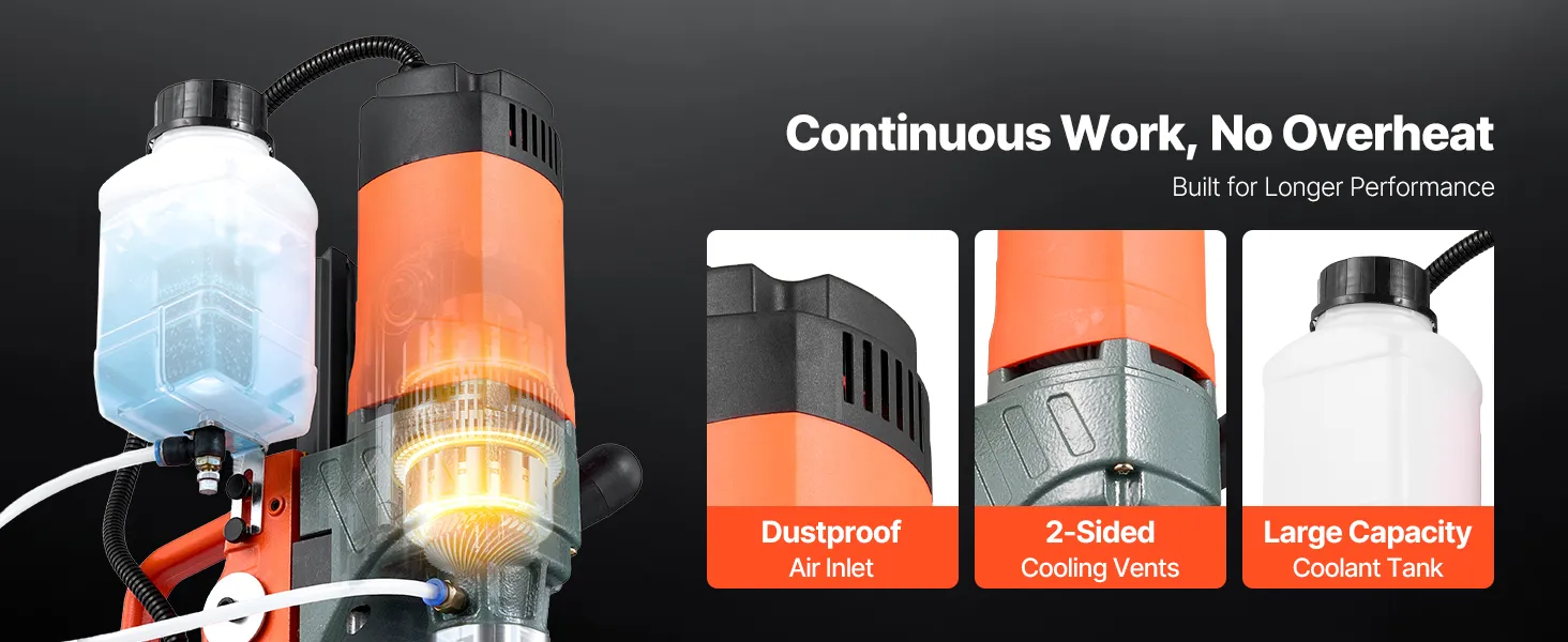 Our mag drill press features a 15A fuse, avoiding motor damage from excess load.