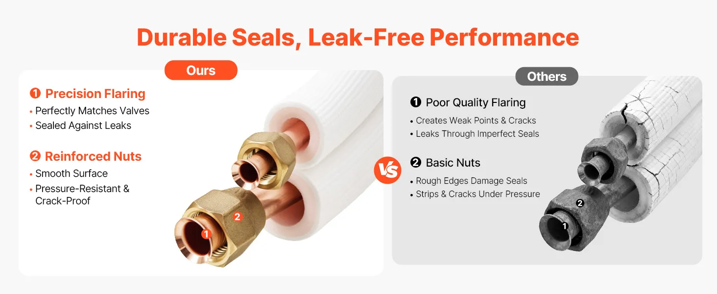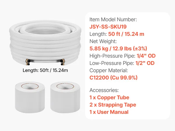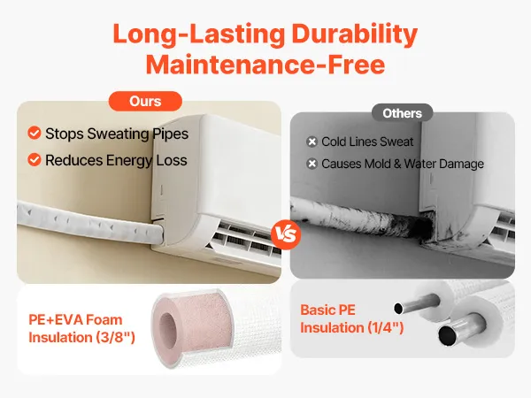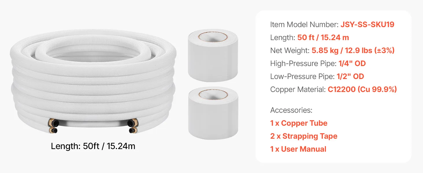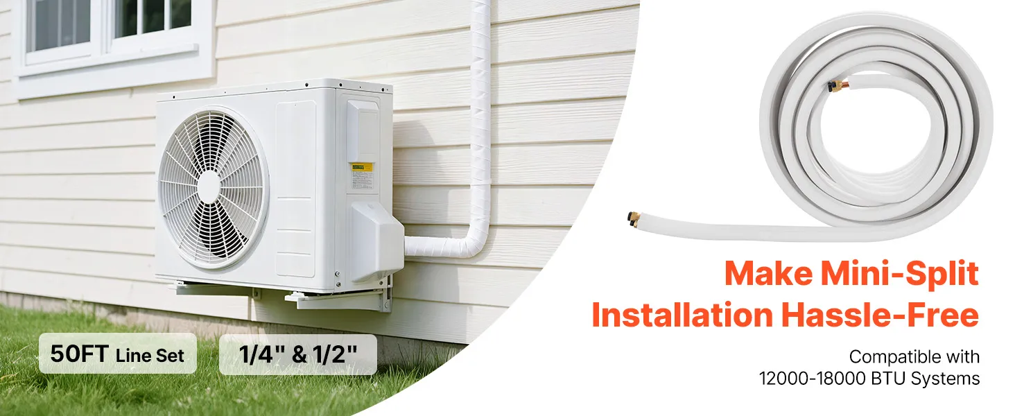 The kit is compatible with mini-split AC units. High-purity tubing resists kinking and leaks during bends, ideal for complex setups like garages or workshops. Comes with strapping tape—ready to use out of the box. Simple installation requires only basic tools to connect indoor and outdoor units.