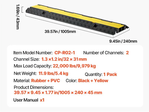 With an anti-slip surface, this cable protector ramp keeps wheels from skidding and helps pedestrians avoid slipping accidents.