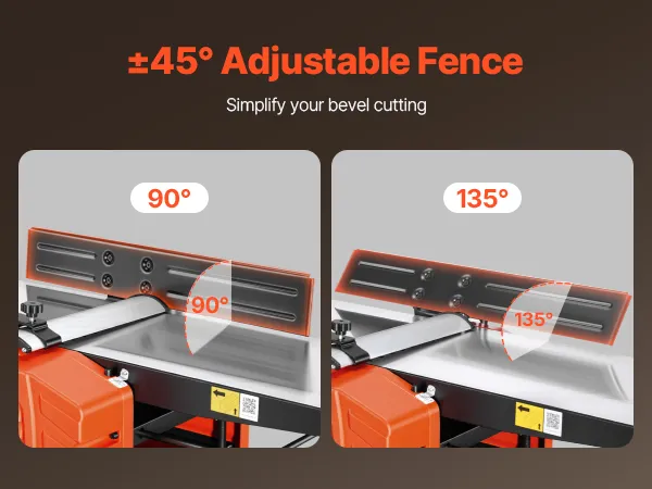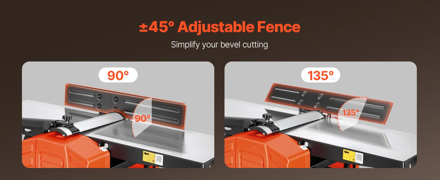 This bench top jointer includes a ±45° adjustable fence, allowing quick setup for both square and beveled edges, tackling any planing task with ease.