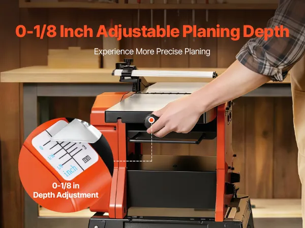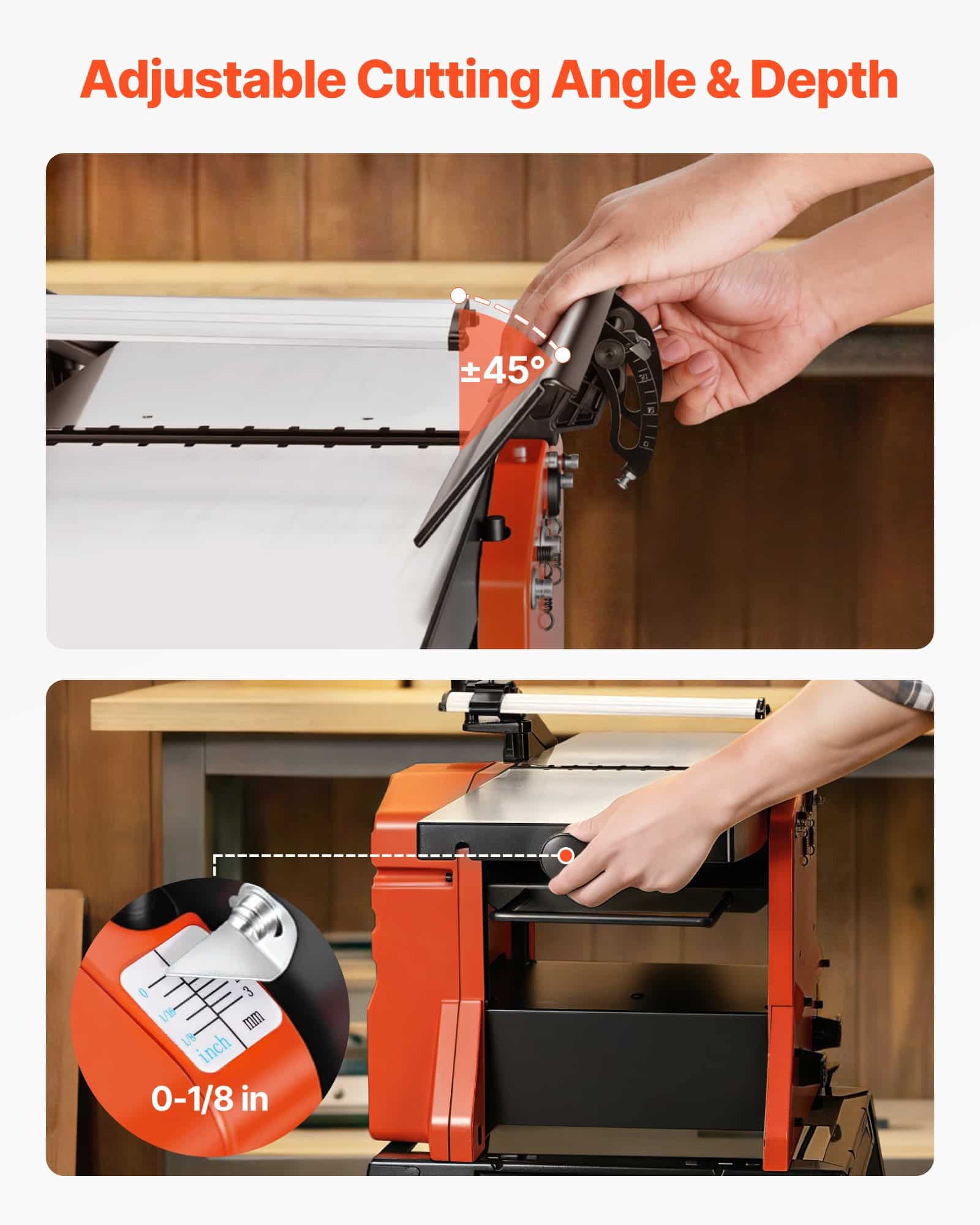 Powered by a 2.4 HP motor, this benchtop planer and jointer combo features an upgraded cutterhead combined with 2 high-speed steel blades. It delivers smooth wood surface planing with uniform thickness, providing efficient and quiet operation.