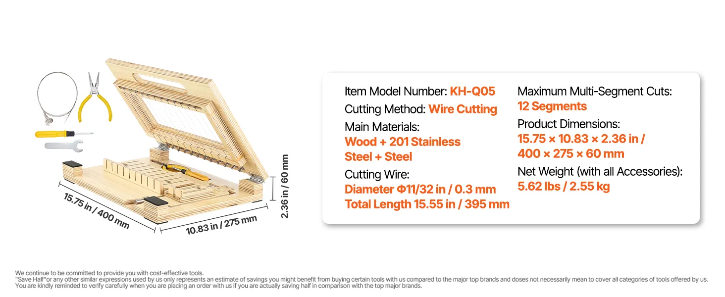 VEVOR Soap Cutter, Cut 1-12 Bars, Precisely and Accurately Cut 1 Inch Bars, Wood Frame With Steel Wire, with Extra Wires, Multi Handmade Soap Wire Cutter for Candles, DIY Making Cutting Tool