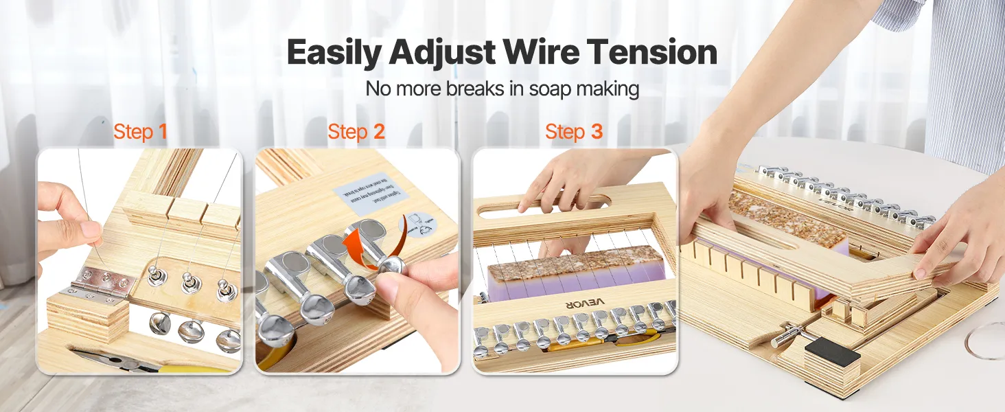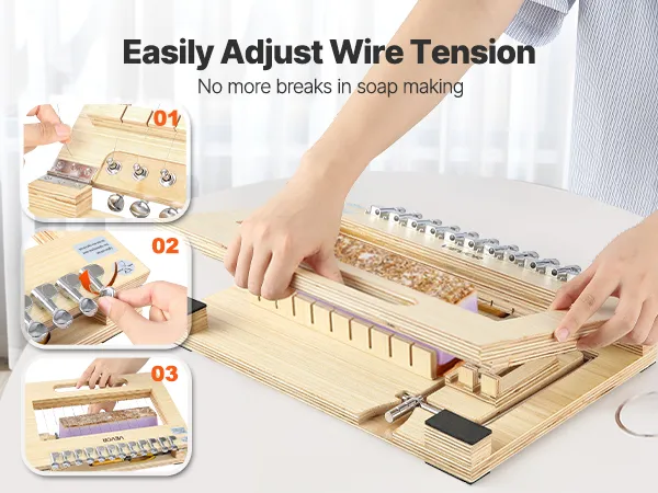You can easily adjust the tension of the cutting wires, ensuring they won't break easily. Whether you're making handmade soap, candles, or other creative projects, this wire soap cutter provides you with extra confidence and convenience, making your crafting process smoother.