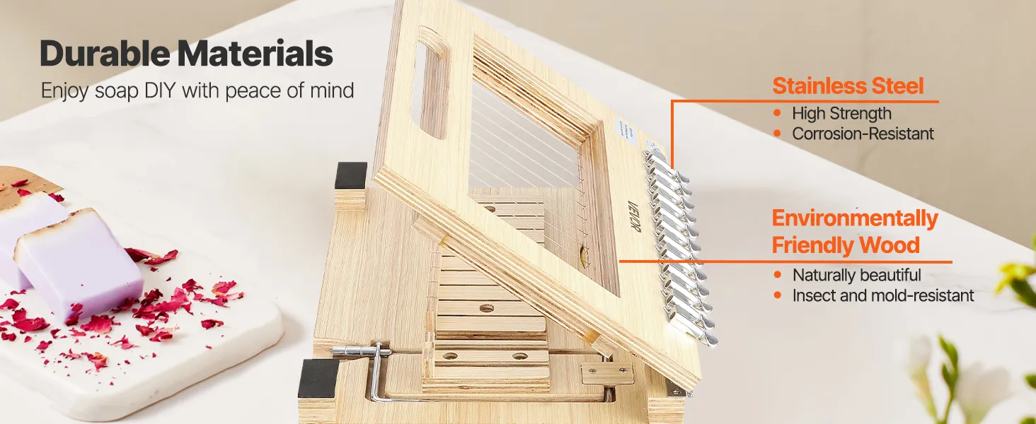 Our soap slicer is crafted from high-quality wood, making soap-making more reliable and elegant, with a high-quality feel. The mold is made of premium silicone for easy release and efficient soap production.