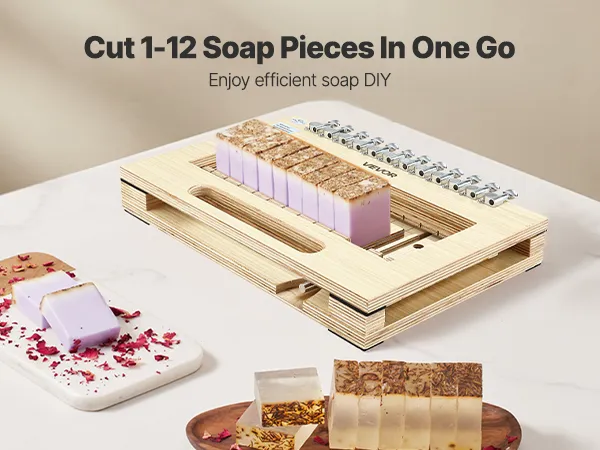 Our soap slicer can cut 1-12 pieces of soap at once, ensuring all soap pieces are the same size. It's designed to save time and enhance cutting efficiency.