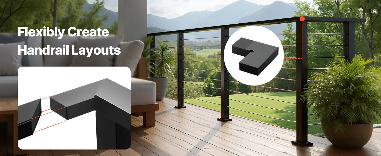 This universal connector fits 2 x 1 inch handrails. Made from high-quality POM, it’s scratch-resistant and impact-resistant. The hidden installation enhances stability and aesthetics, ideal for both indoor and outdoor use to create stylish handrails.