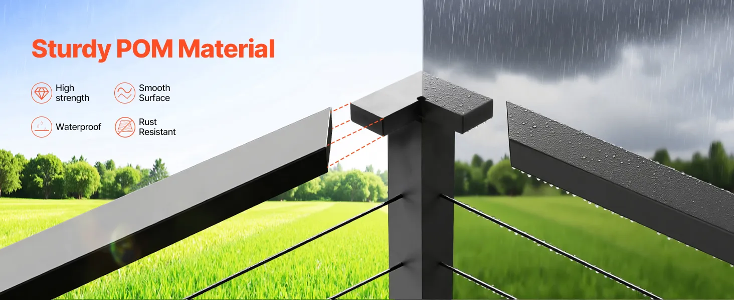 Made from high-strength POM, this connector is smooth, waterproof, and rust-resistant. It withstands harsh weather, offering long-lasting support and reliable protection for your handrails.