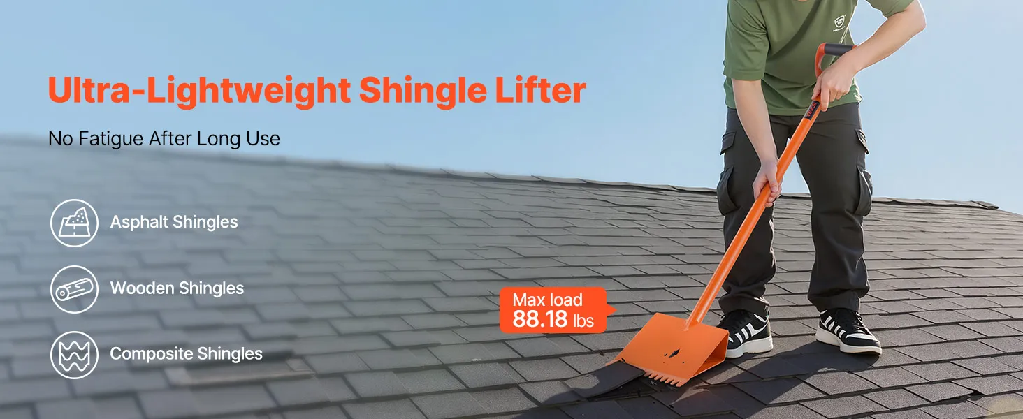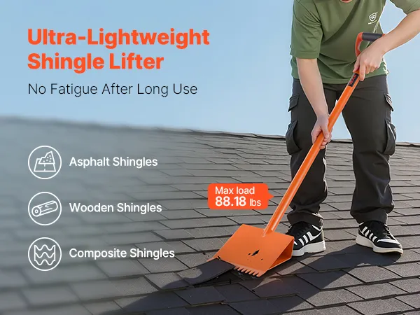• Ergonomic Effort-Saving Design: The shingle shovel features a PP soft grip for a secure hold and a shock-absorbing, ergonomic 30.47-inch extended lever. It reduces effort and maintains comfort during prolonged use, minimizing hand fatigue