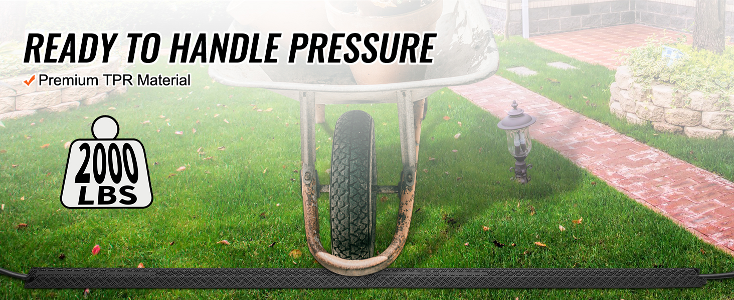 The cable protector ramp is able to withstand up to 2,000 lbs per axle, so pedestrians or hand carts can pass through without stress.
