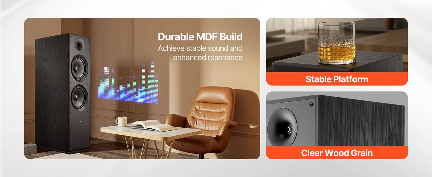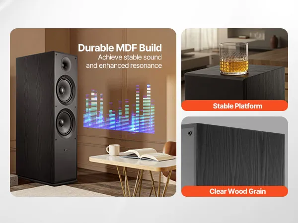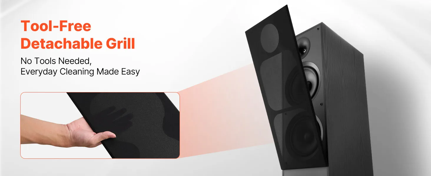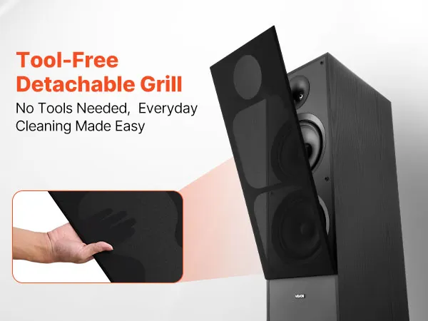 • Quality MDF Enclosure: Sturdy wood cabinet reduces unwanted resonance. Our floor standing speaker is built with a detachable grille, safeguarding your drivers and makes cleaning a breeze