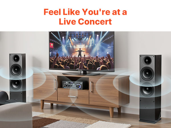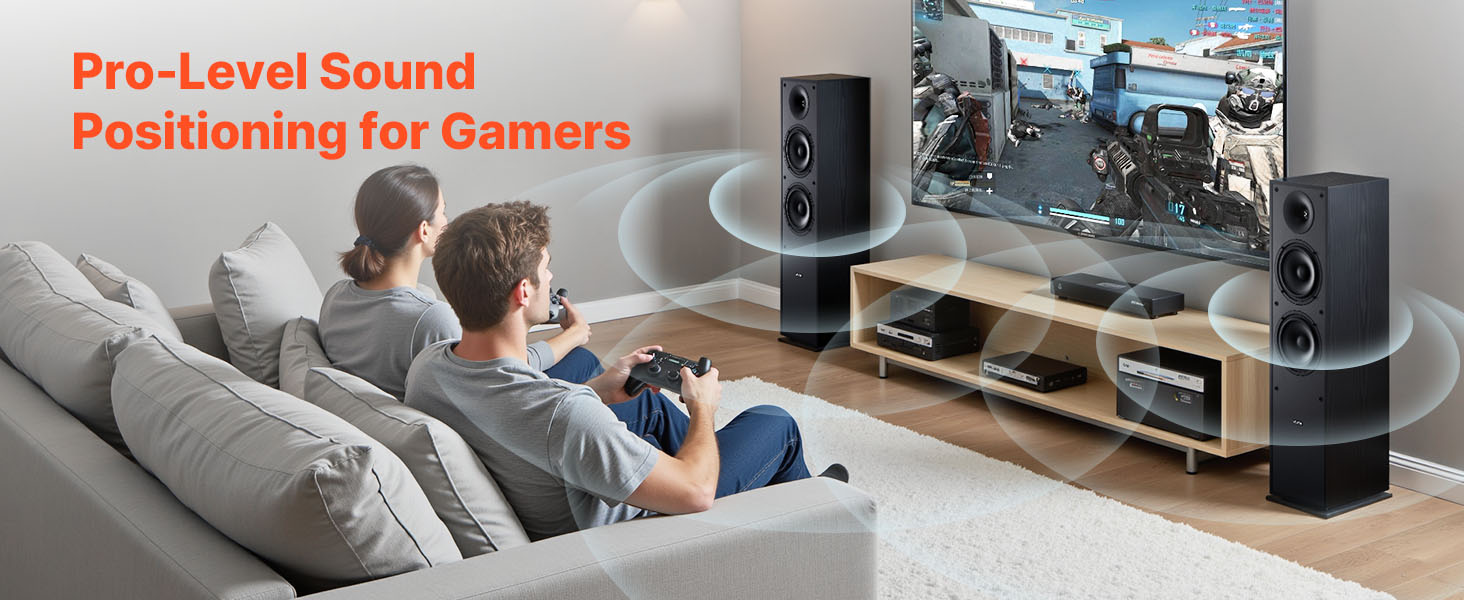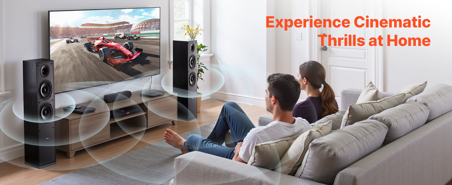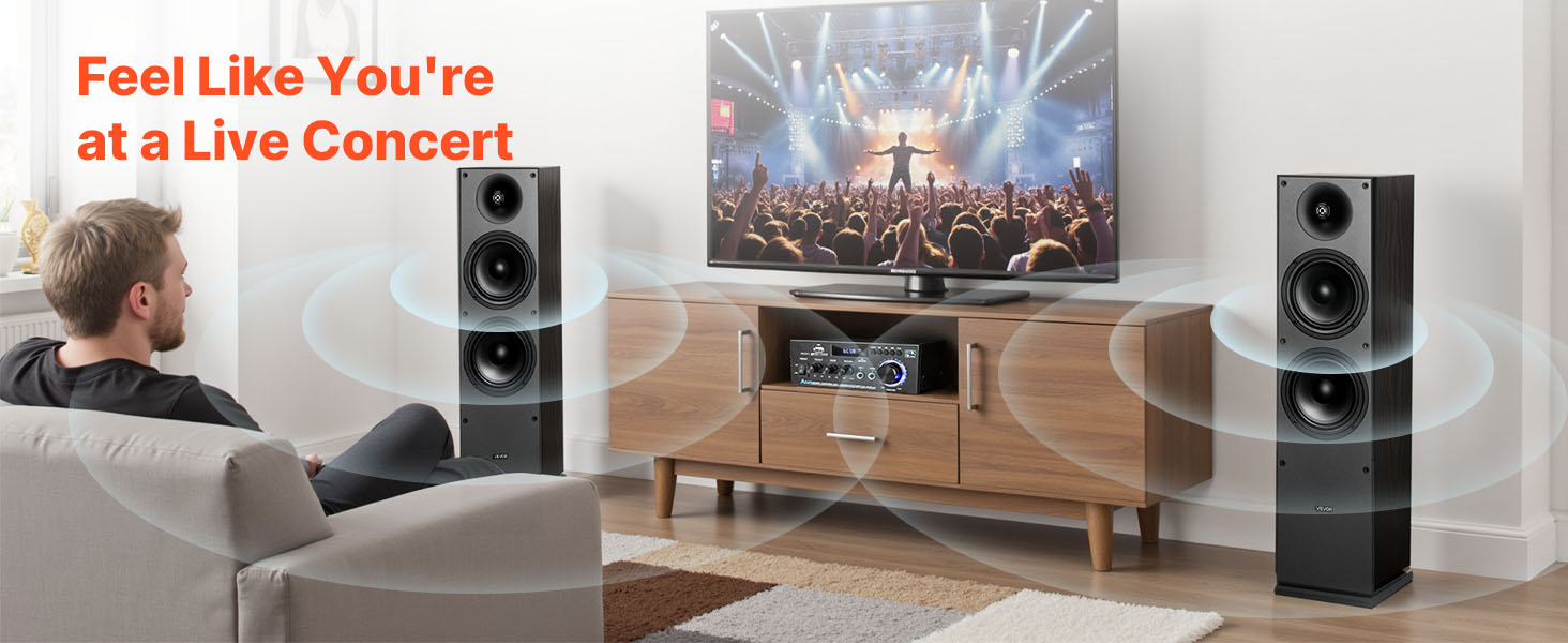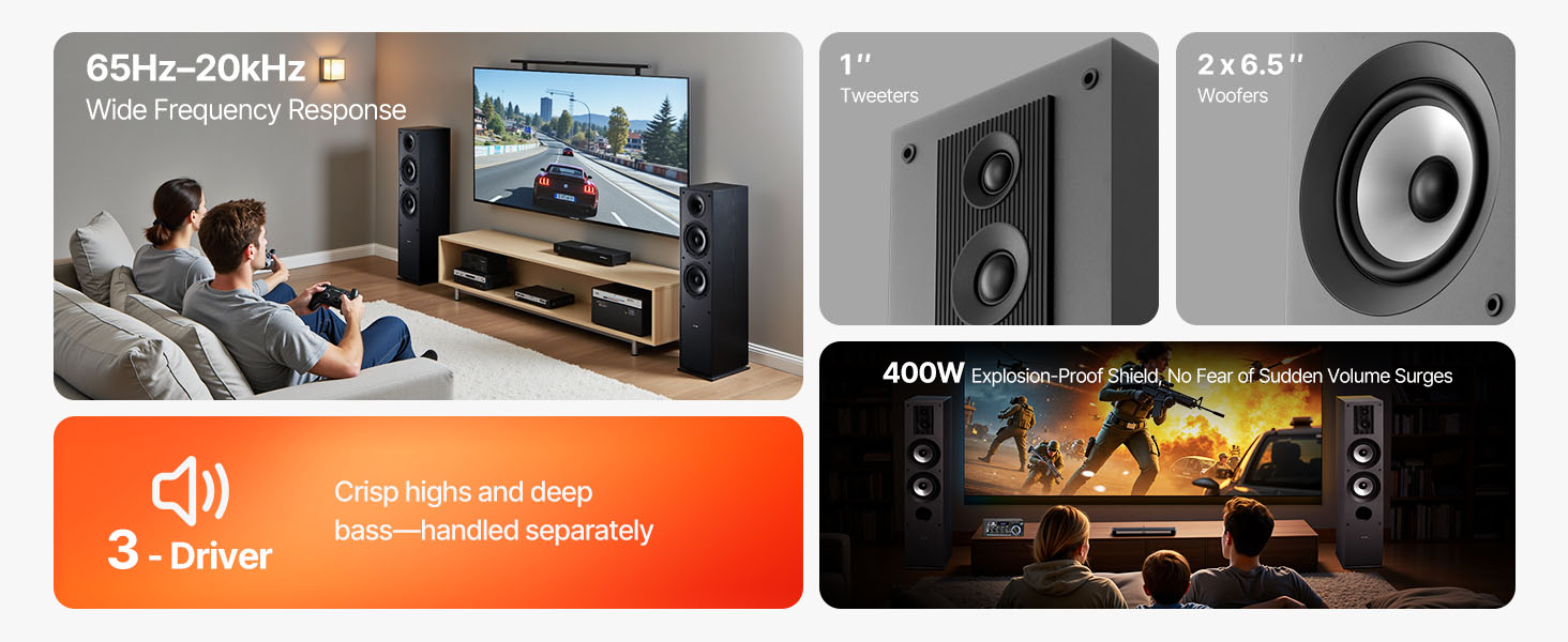 Our floor-standing tower speaker adopts dual woofers, delivering tight, punchy bass that hits with precision.