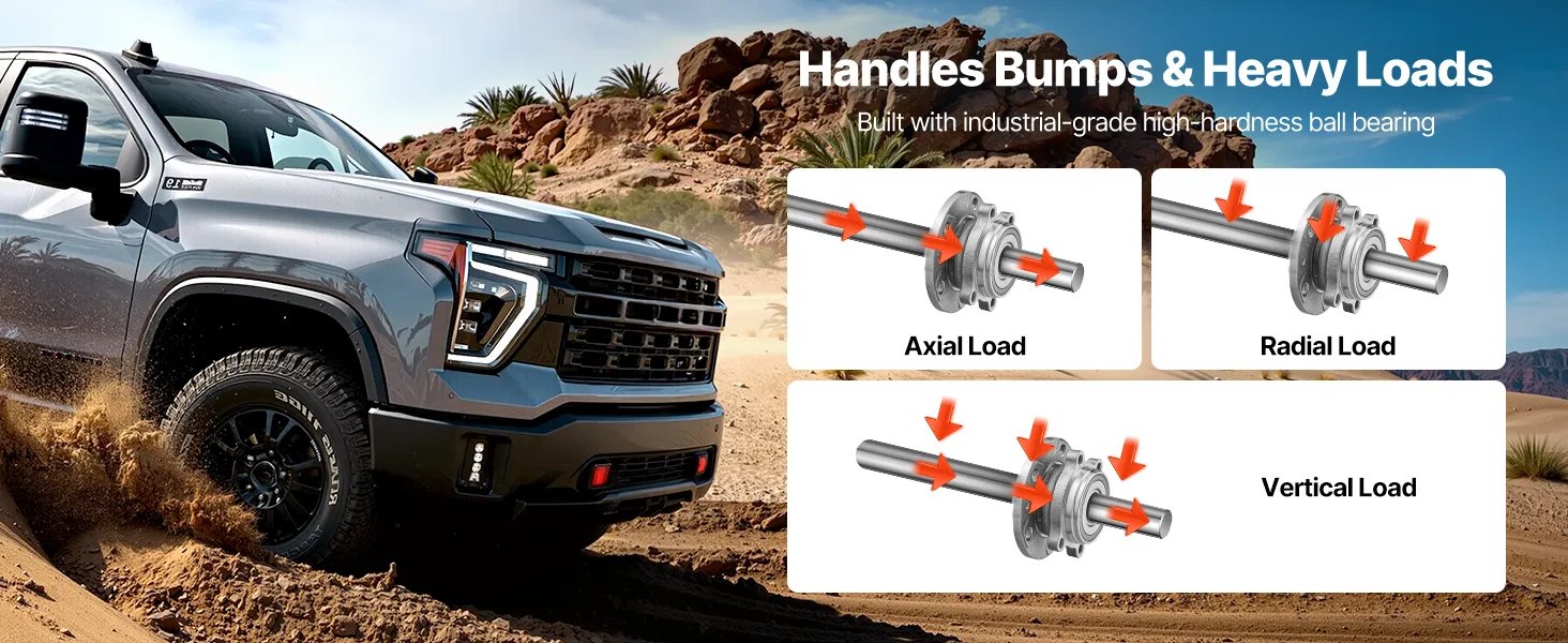 • Industrial-Grade Steel Bearing: The wheel bearing is pre-lubricated to minimize friction and wear, and reduce noise. It can withstand multi-directional loads during steering, ensuring reliable handling