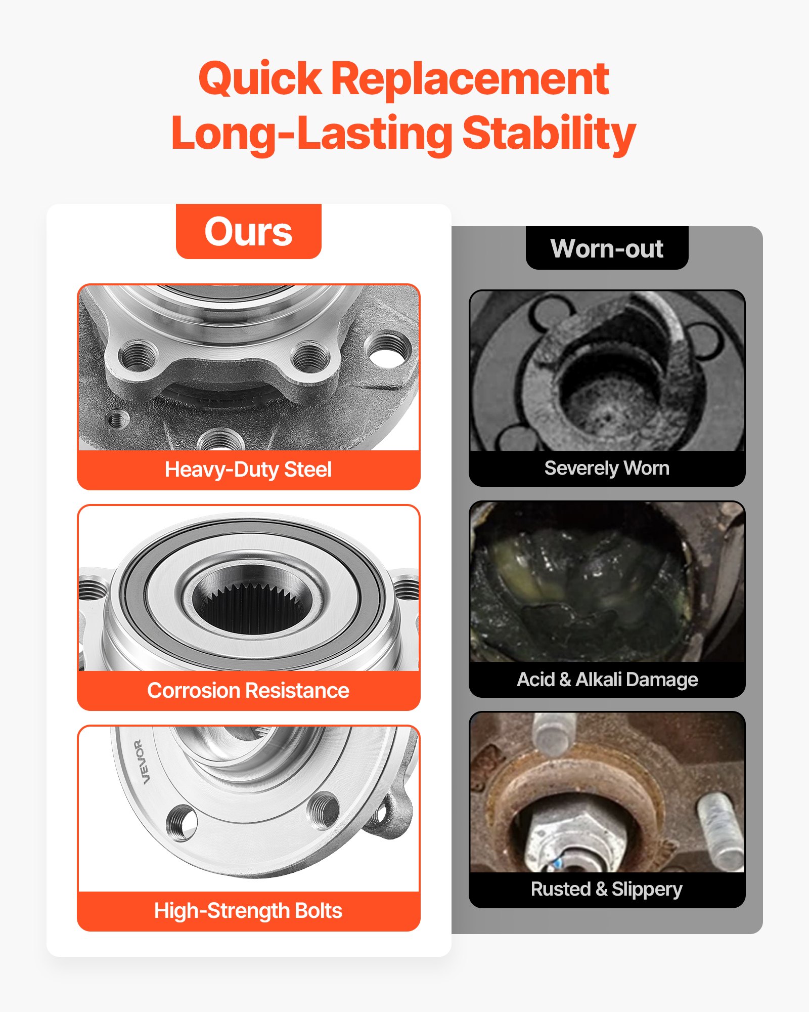 • Restore Stable, Quiet Steering: Replace your rusted, noisy wheel bearing hub to reduce wheel or steering vibrations. Our assembly installs quickly and tightly, reducing wear, resisting pressure, and maintaining shape