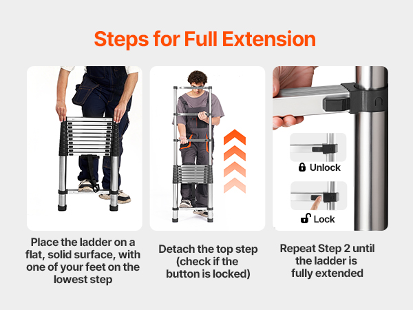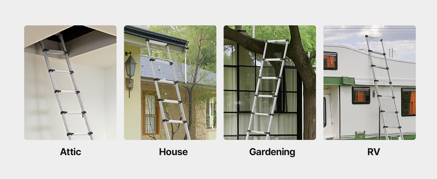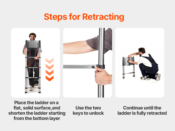 Made with durable steel and nylon connectors for extra strength, this ladder provides stability for both home and commercial use with 375lbs load capacity. The multi-button retraction design ensures simple operation. Wide steps offer comfort and stability, making high-altitude tasks a lot easier.