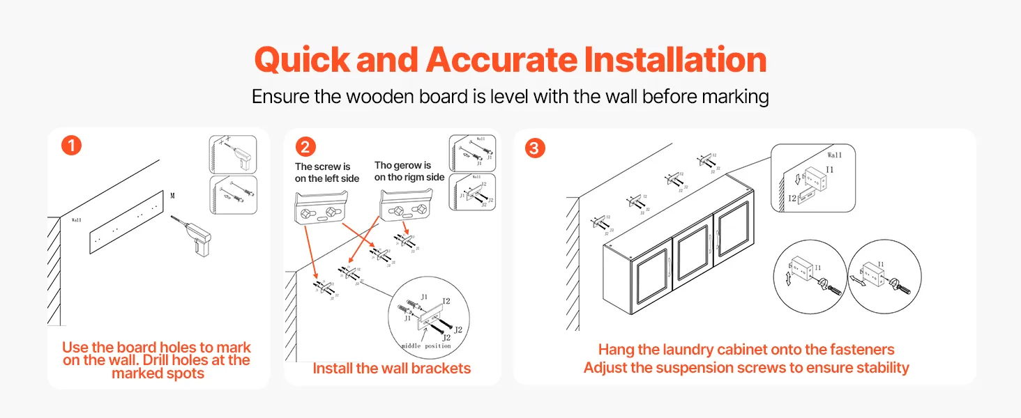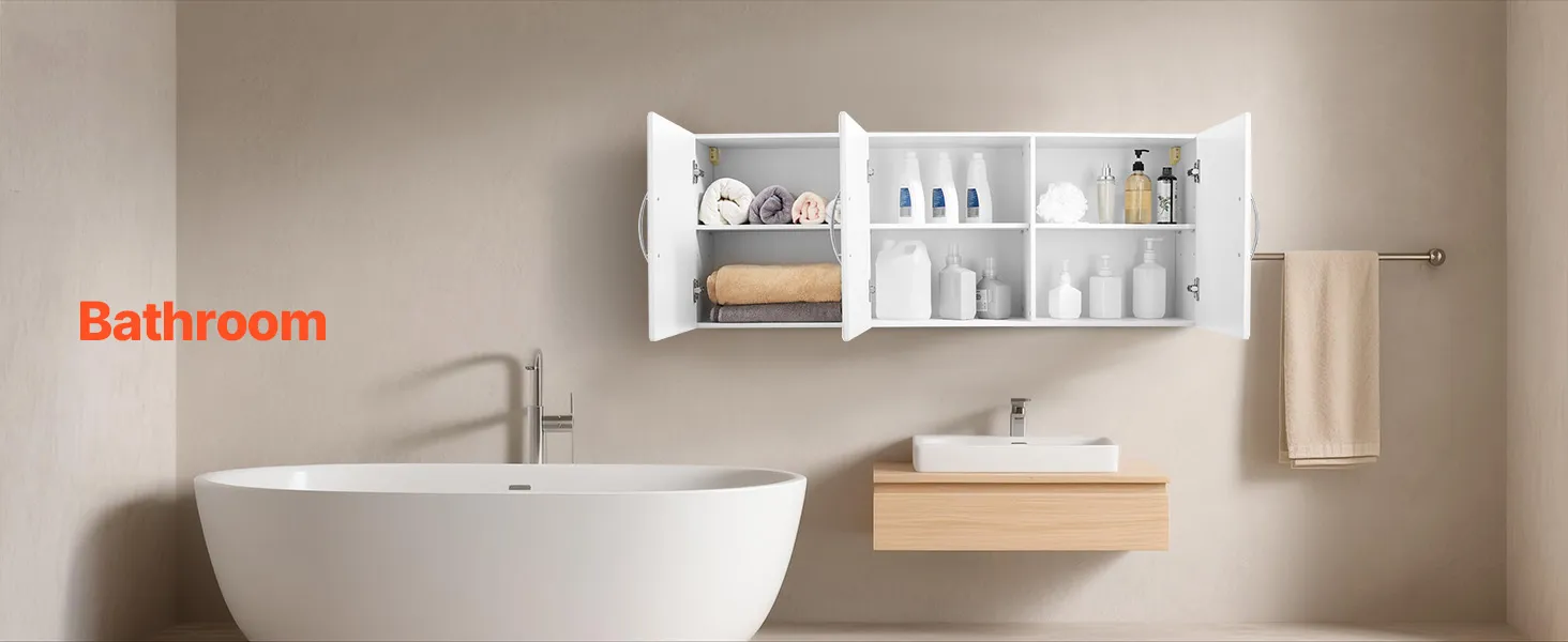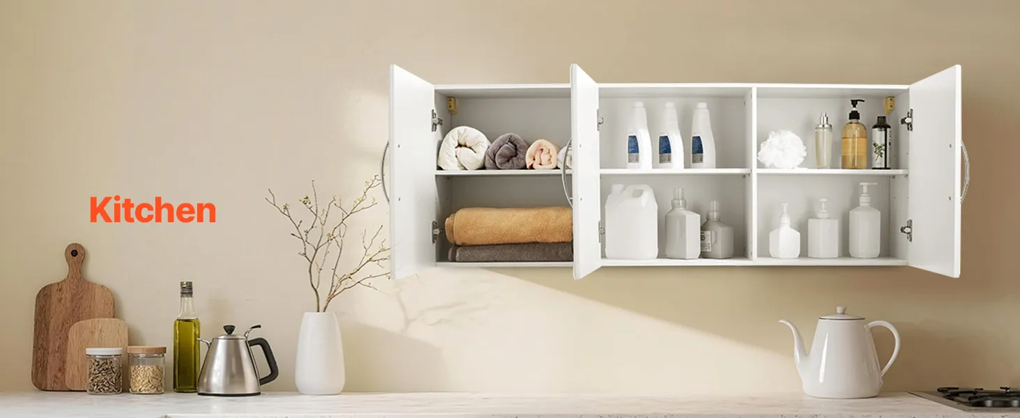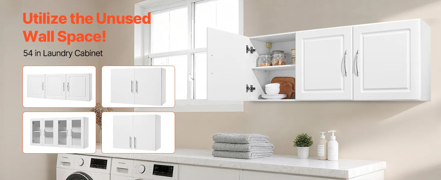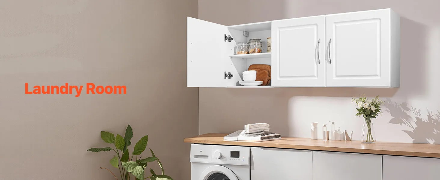 Are you still struggling with storage issues in your laundry room? This wall-mounted cabinet saves valuable floor space, allowing even a small laundry room to have ample storage capacity to meet the daily storage needs of your laundry supplies.