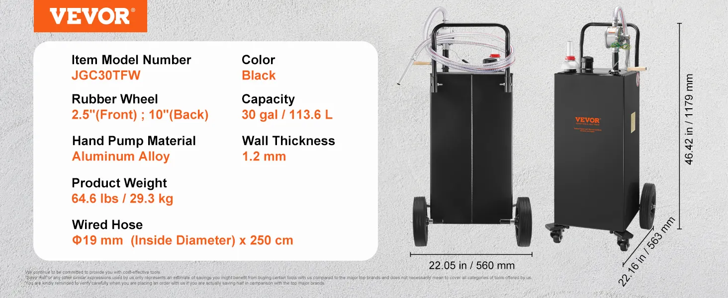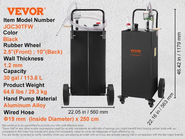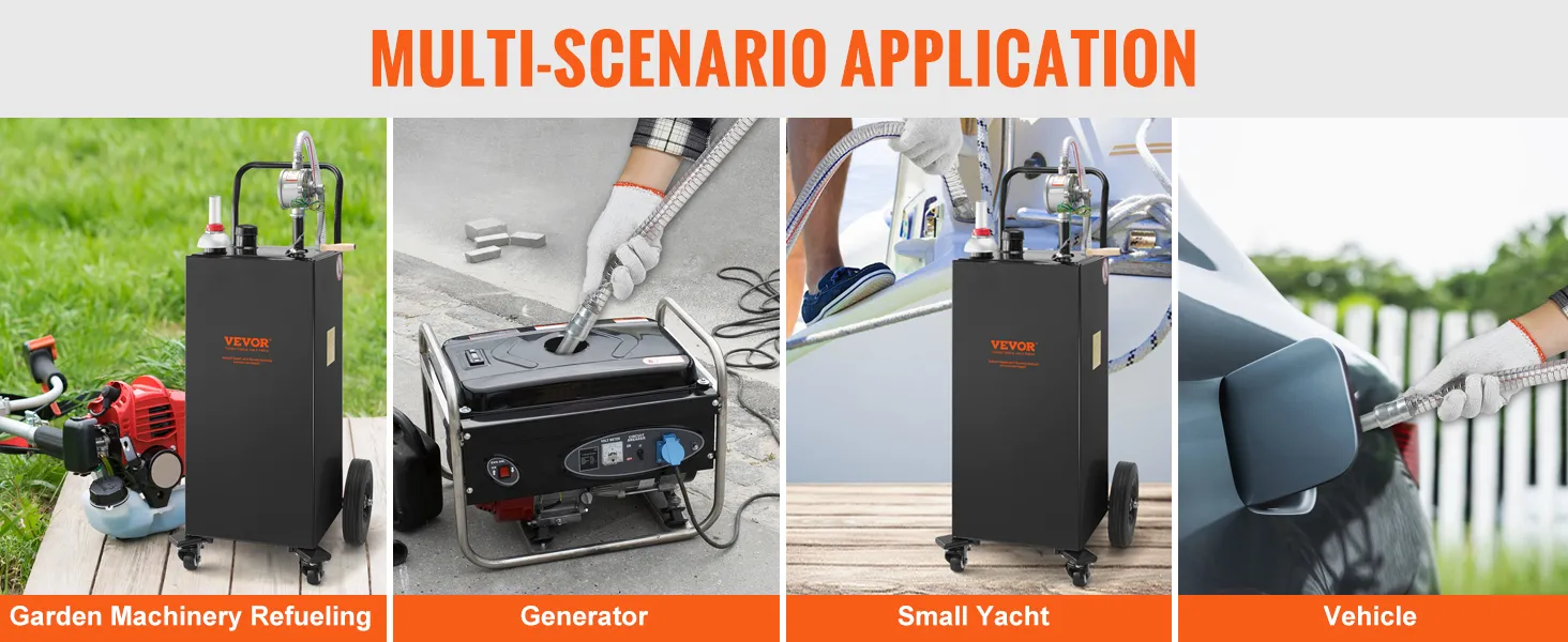 The portable gas tank is designed to transport diesel or gasoline fuel to your job site. It is ideal for tanker trucks, ships, outdoor industries, construction industries, and more.