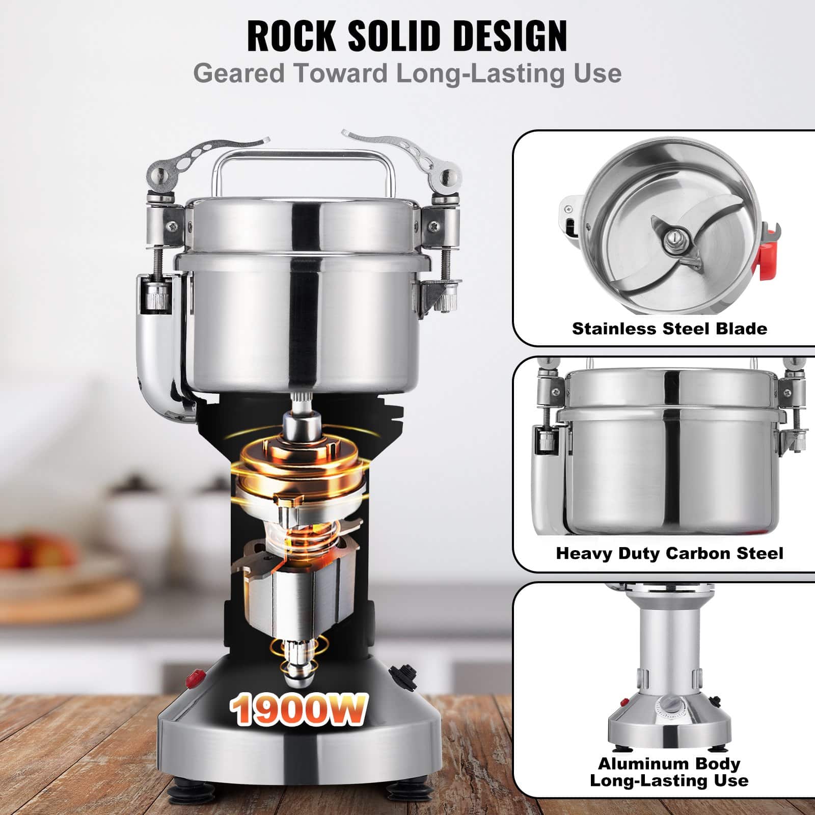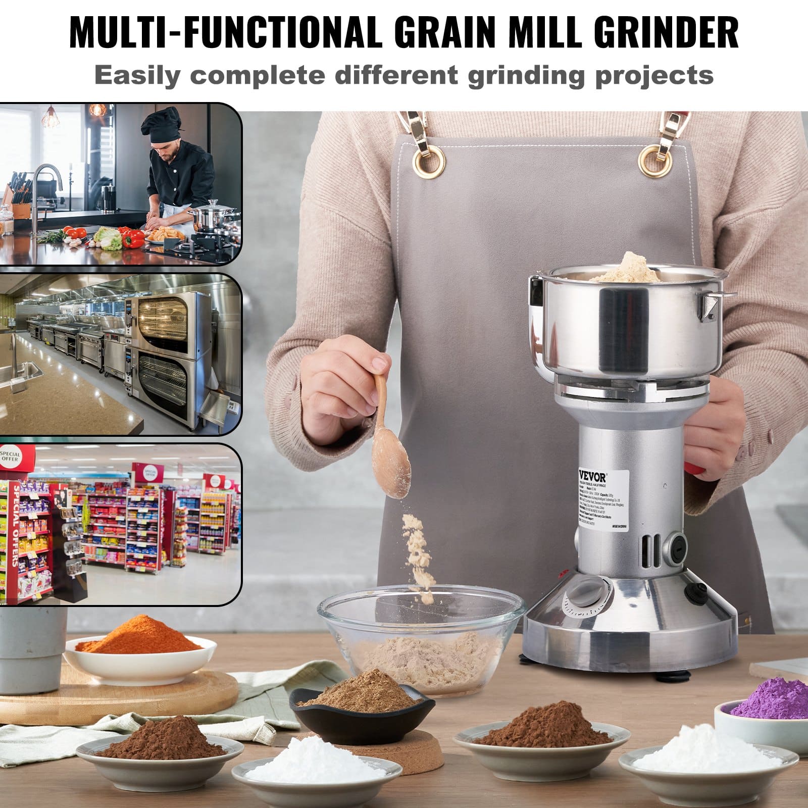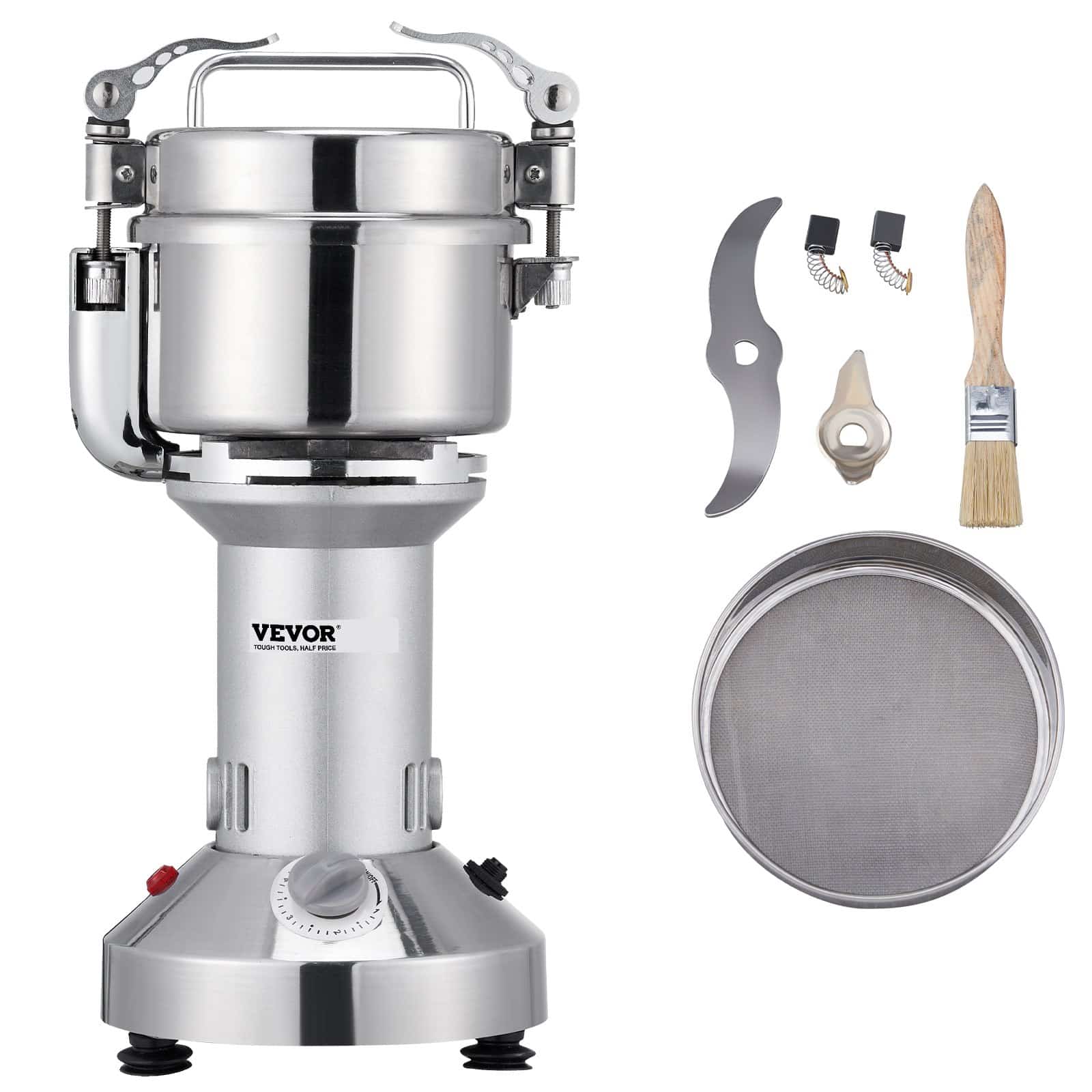 A: It can deal with various dried materials, including grains, spices, and herbs. Not suitable for wet, fresh, oily, or sticky materials.