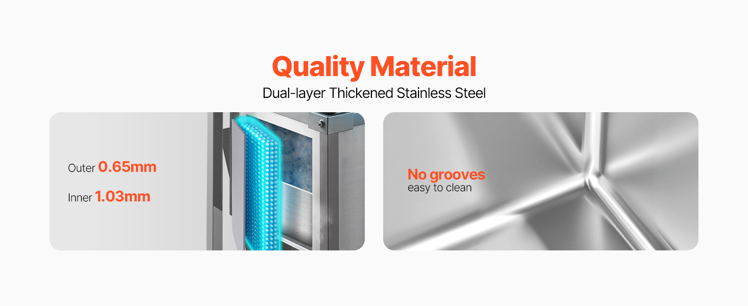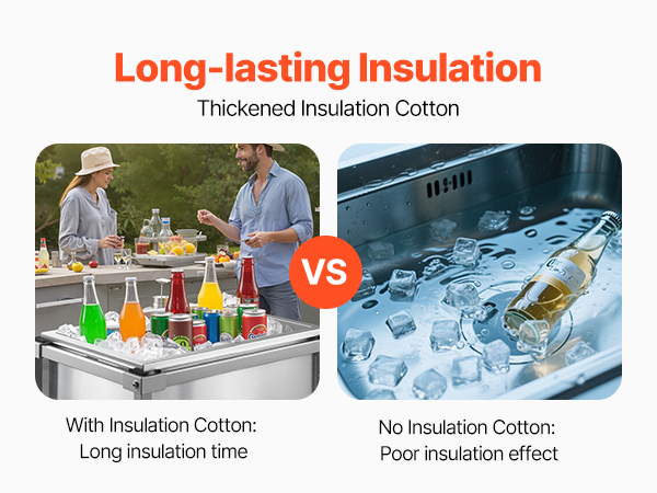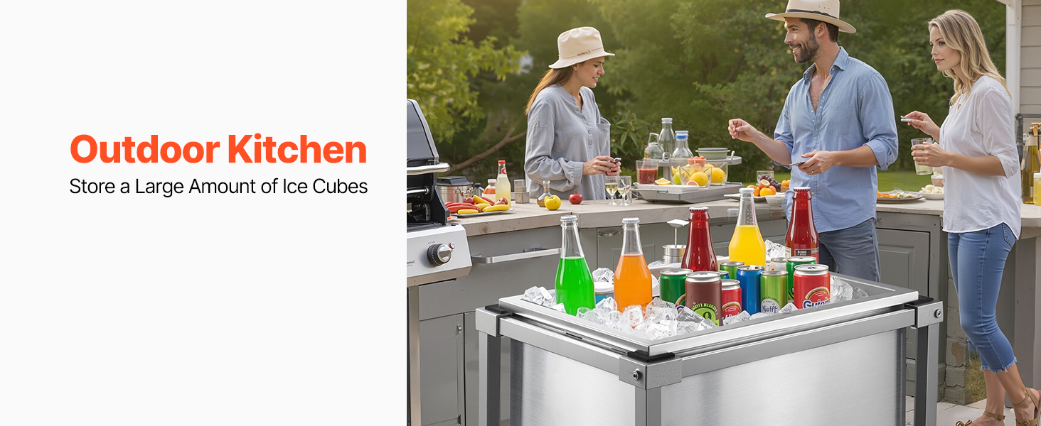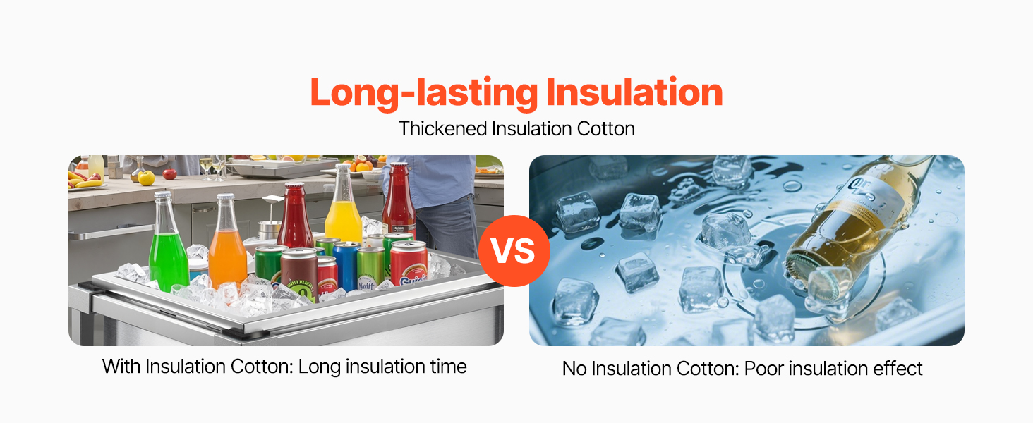 • Stainless Steel Material: The ice cooler is NSF certified. It is made from stainless steel, making it durable and rust-resistant. The interior uses an integrated full-welding process, greatly reducing the possibility of leaks