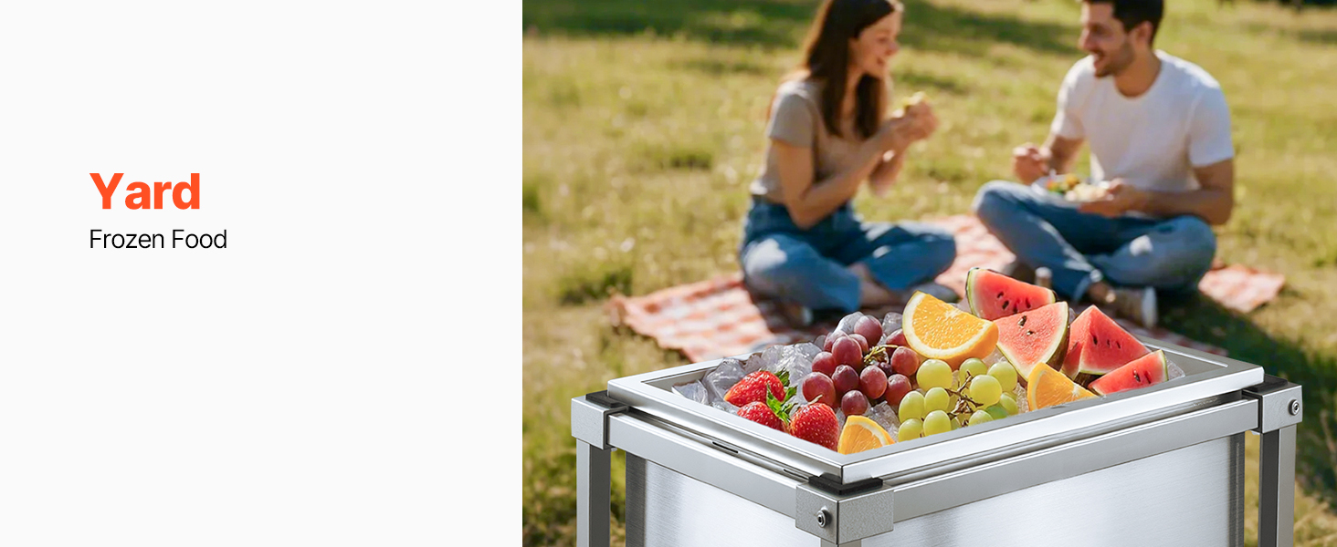 VEVOR 31L пересувна охолоджувальна скриня з нержавіючої сталі з полицею, ізольований вуличний візок для тераси та вечірок