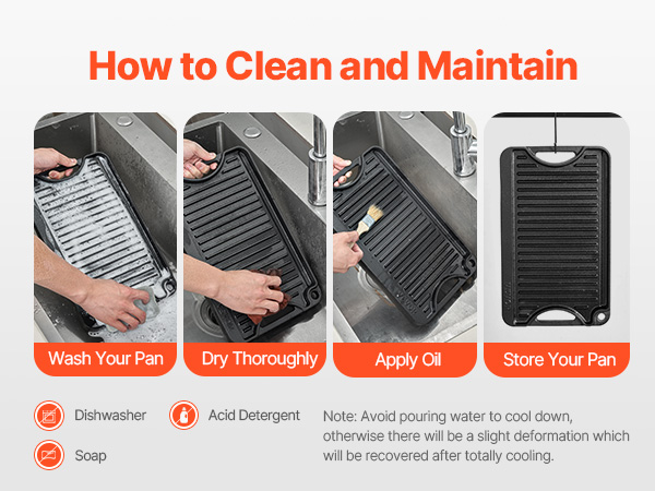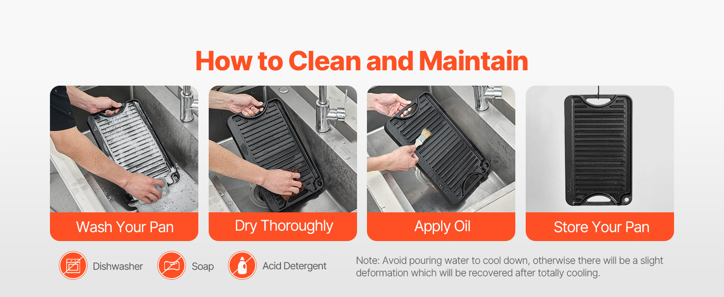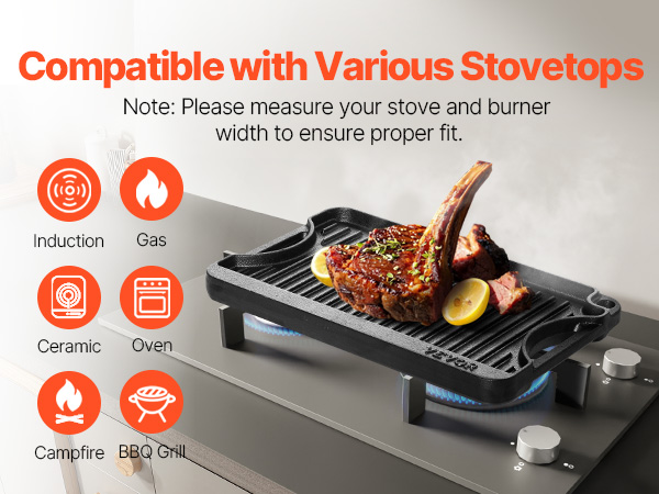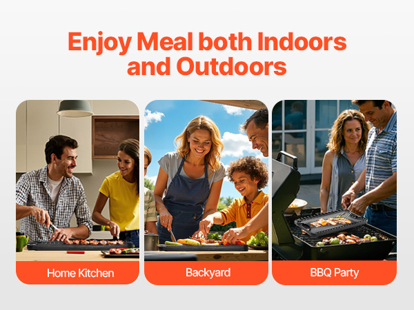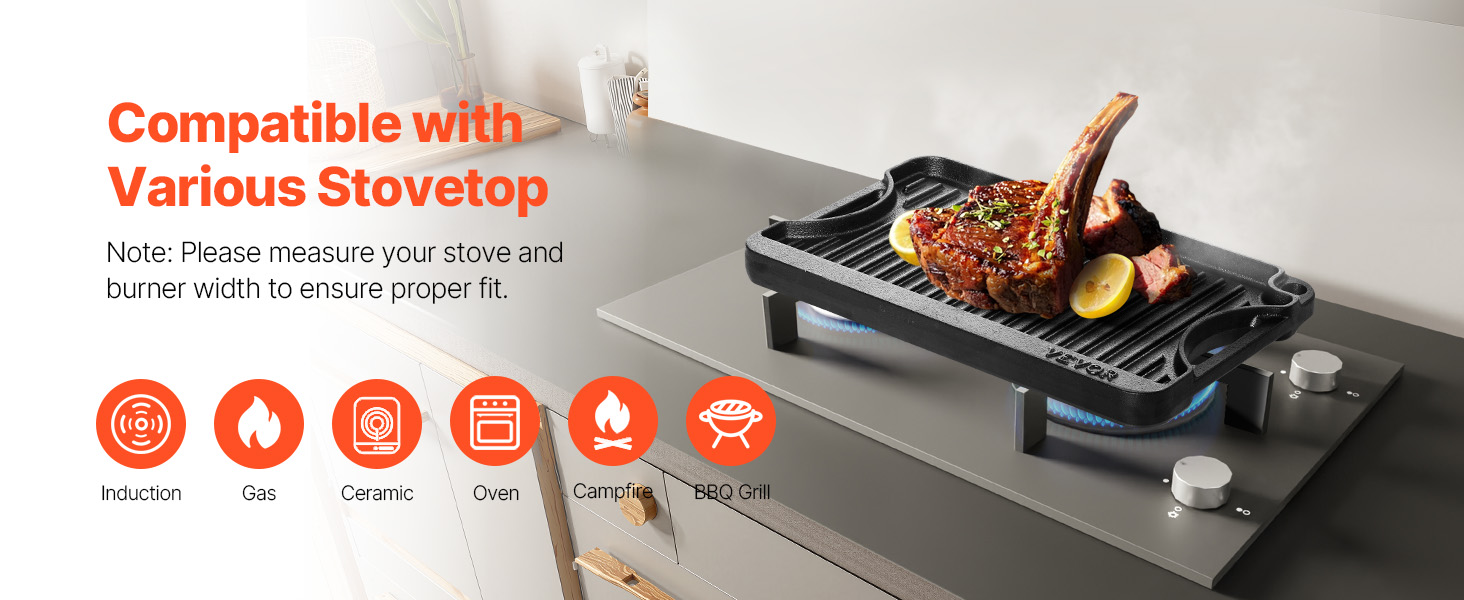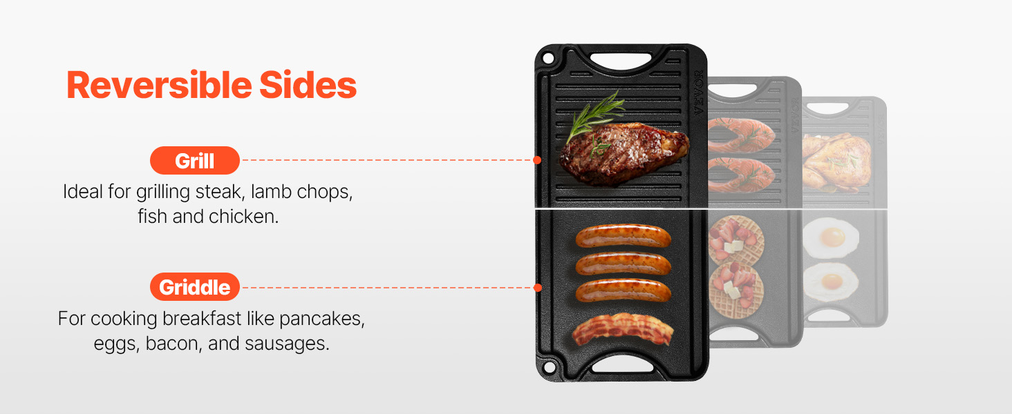 Q1: Is this griddle pan compatible with most stovetops? A1: Yes! Our griddle pan is designed to be compatible with most stovetops, including electric, gas. It also works great on outdoor grills or camping stoves, making it versatile for both indoor and outdoor cooking. Q2: Is the griddle pan easy to clean? A2: Yes! The griddle pan features a non-stick coating that makes cleaning a breeze. Simply wipe it down with a soft sponge or cloth after use. For tougher stains, soak it for a few minutes in warm soapy water, and most will come off with minimal effort. Q3: How can I prevent food from sticking to the griddle pan? A3: To prevent sticking, we recommend preheating the griddle pan and lightly oiling the surface before cooking. For cast iron pans, seasoning the surface before first use and after each cleaning will help develop a natural, non-stick layer.