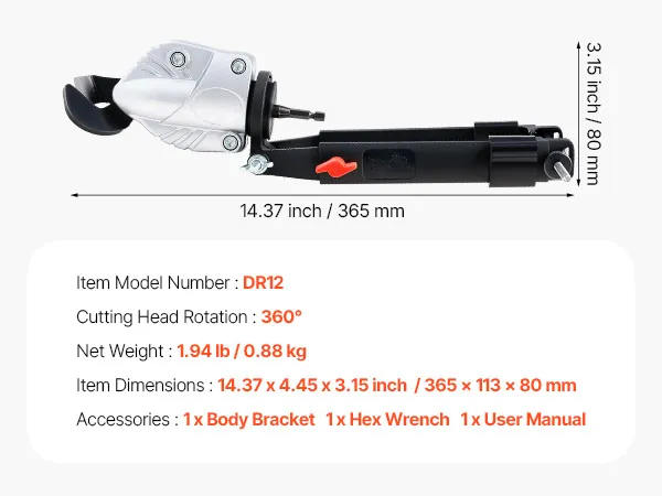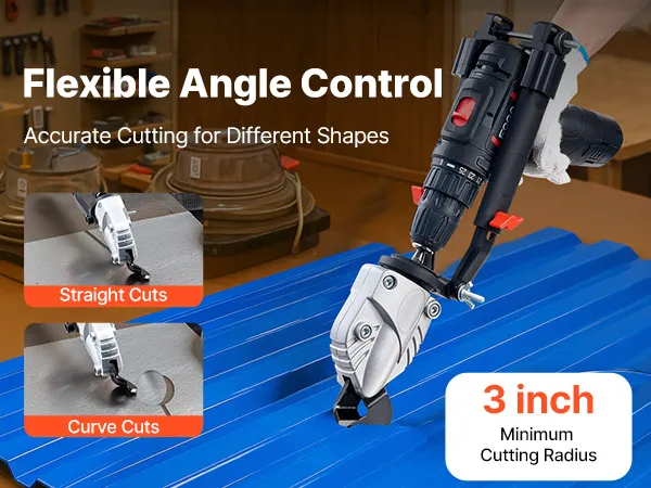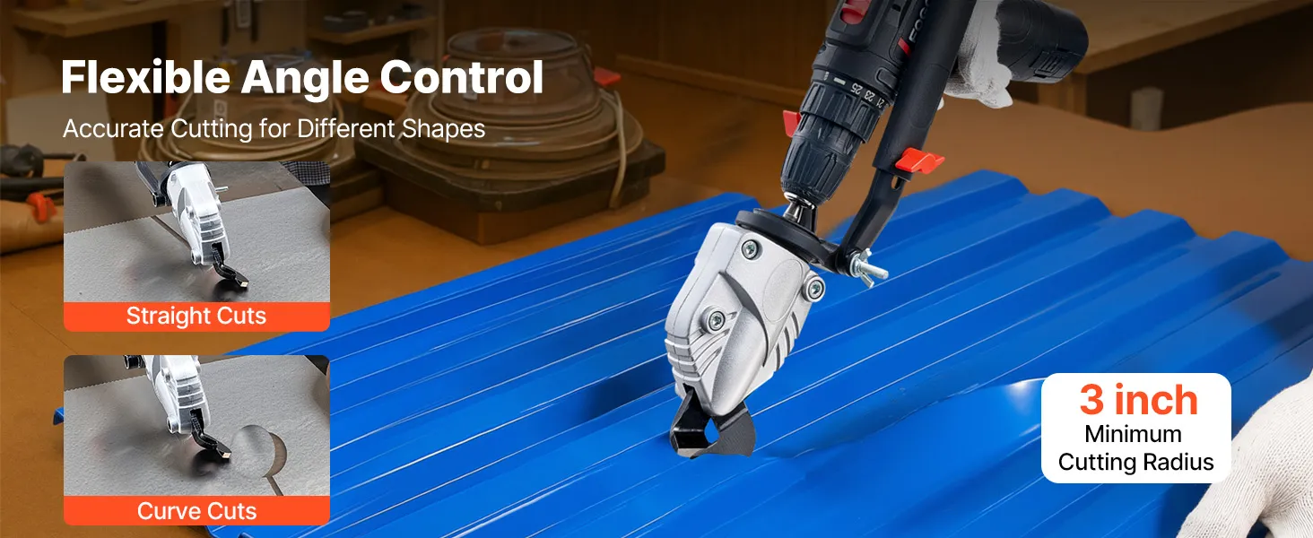 Equipped with a rotatable cutting head, this drill nibbler attachment can achieve straight lines, tight curves, and intricate shapes. With a minimum cutting radius of 3 in, it effortlessly handles circles, ovals, and irregular patterns.