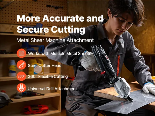 This sheet metal nibbler attachment cuts stainless steel, galvanized steel, and aluminum with ease. Hardened blades and a 360° swiveling head ensure precision, while the universal drill shank connects quickly to most drills for fast, hassle-free cutting.