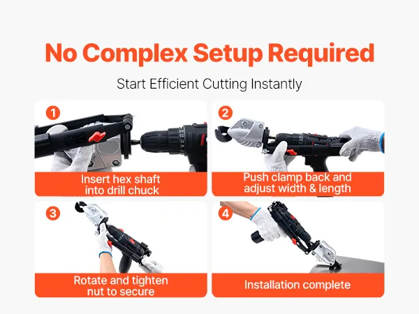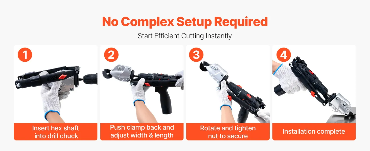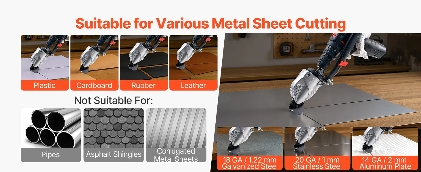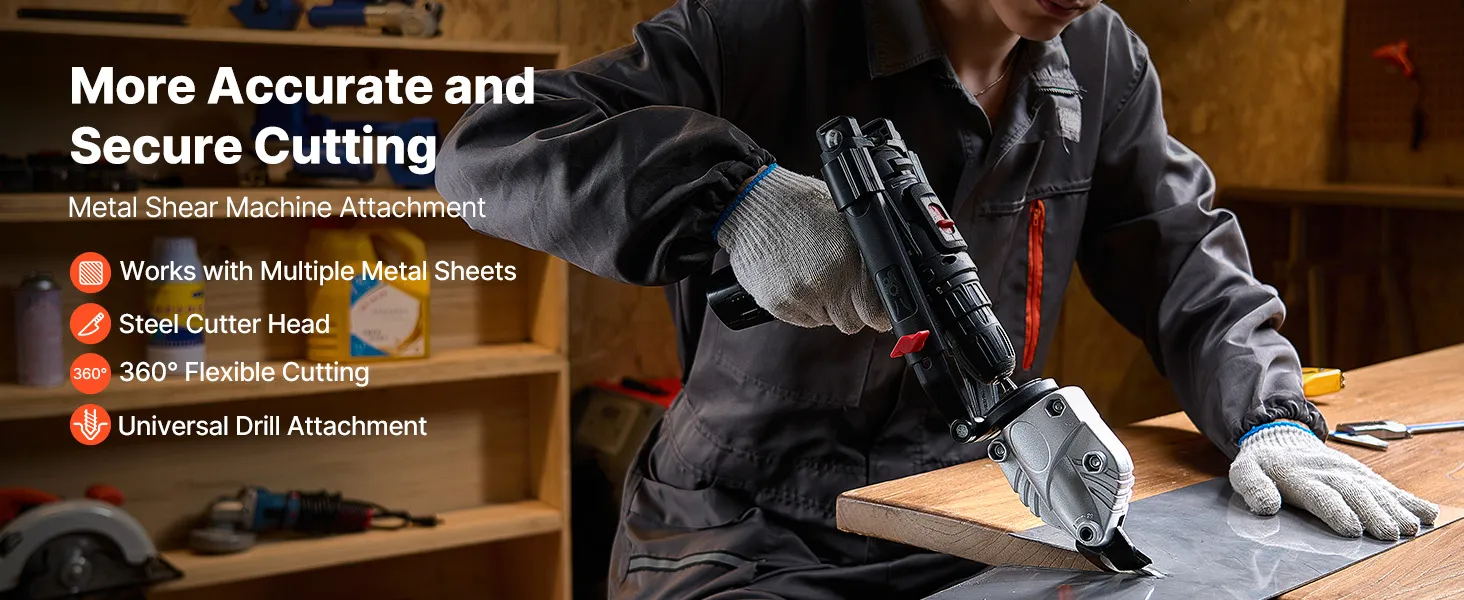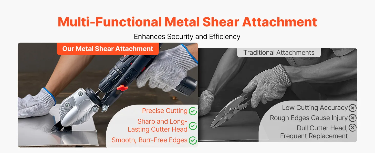 VEVOR Metal Shear/Cutter Drill Attachment, Sheet Metal Cutter with 360-Degree Pivoting Head, Sharp Blades,Ideal for 1.22 mm Galvanized Steel, 1 mm Stainless Steel, Aluminum Plate, Plastic, Cardboard