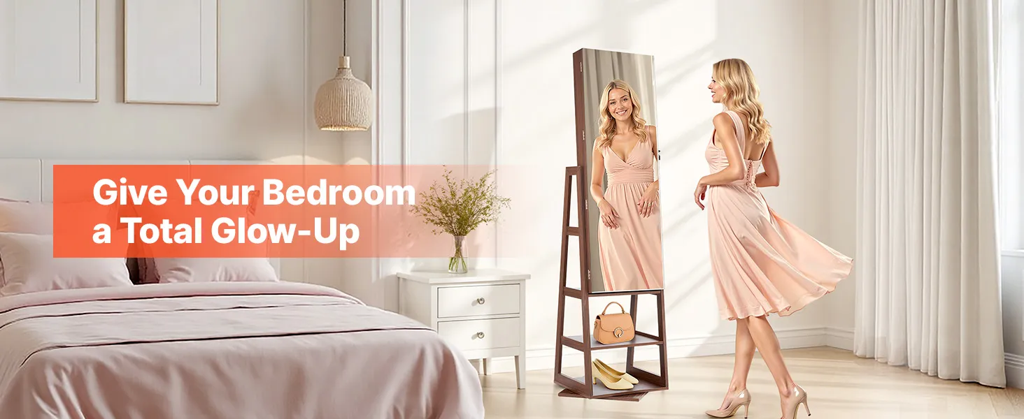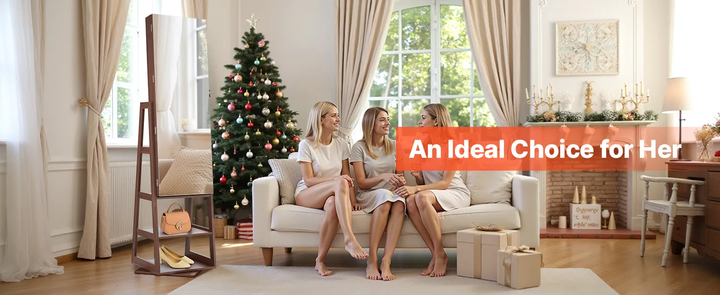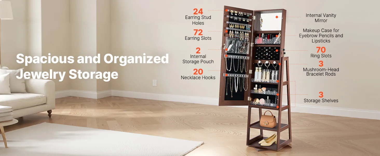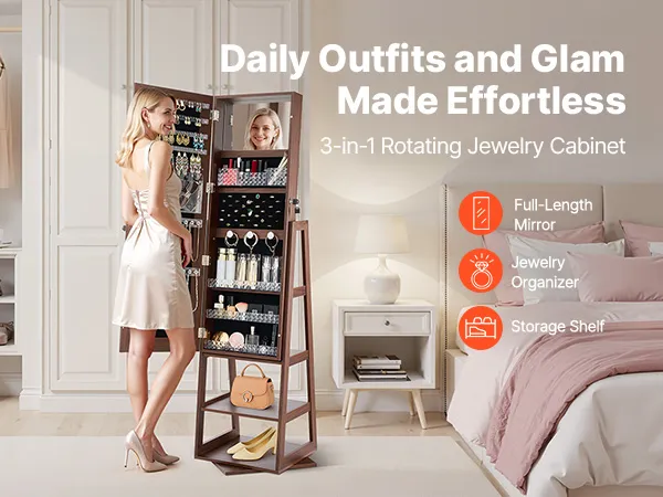 Tired of tangled jewelry? This 360° swivel jewelry cabinet keeps your pieces organized and doubles as a full-length mirror. It saves space, adds style, and makes an ideal present for your wife, mother, girlfriend, or friend, bringing a daily dose of delight every time she gets ready!