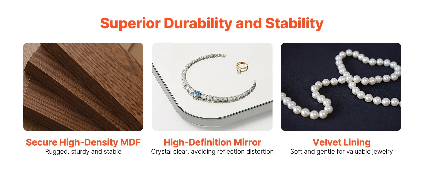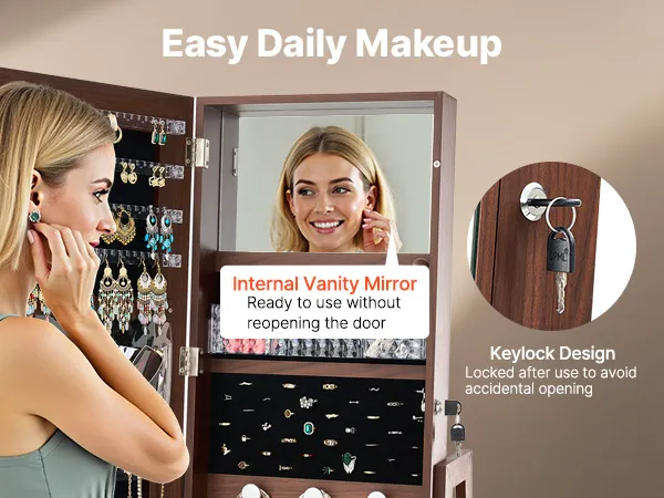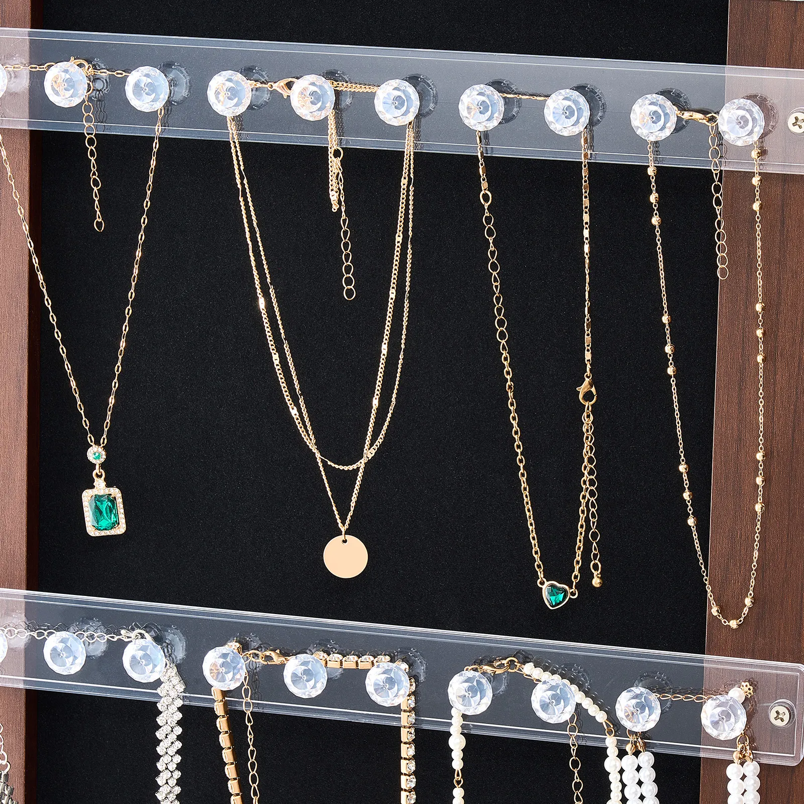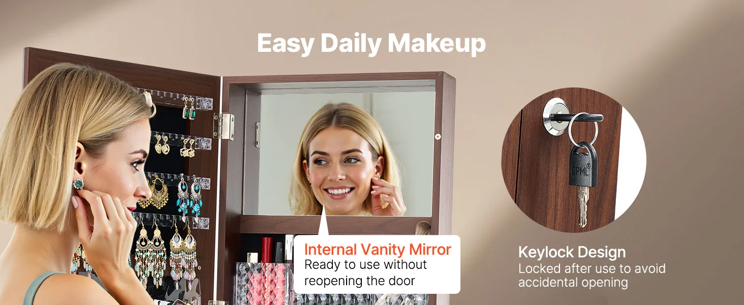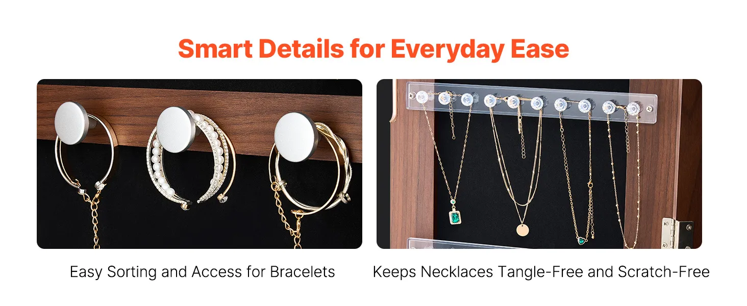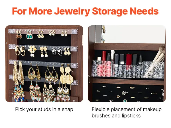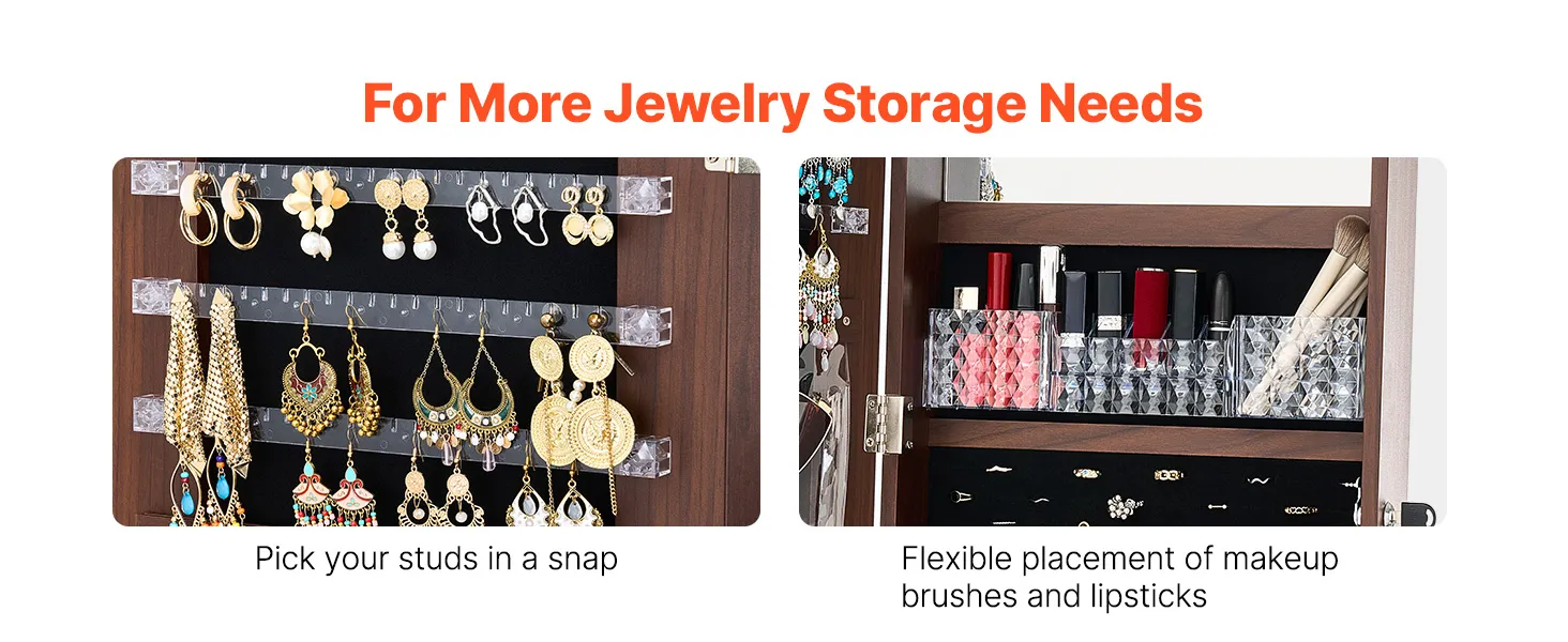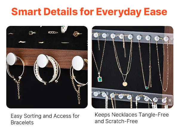 The rotatable jewelry mirror features dedicated earring and stud slots, allowing you to hang and organize your jewelry separately for quick and easy selection.