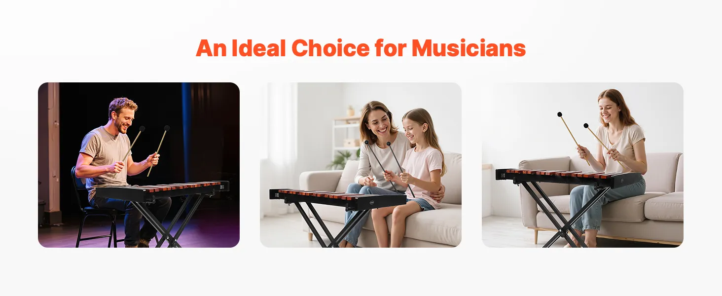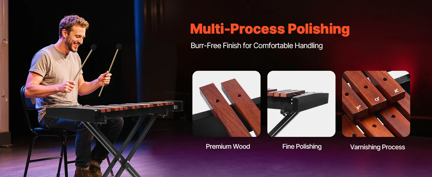 Made with SPCC low-carbon steel keys, this professional xylophone instrument provides bright, clear tones with rich overtones and stable pitch. Each key is expertly tuned before leaving the factory to ensure accurate sound—even in ensemble settings or after long-term use.