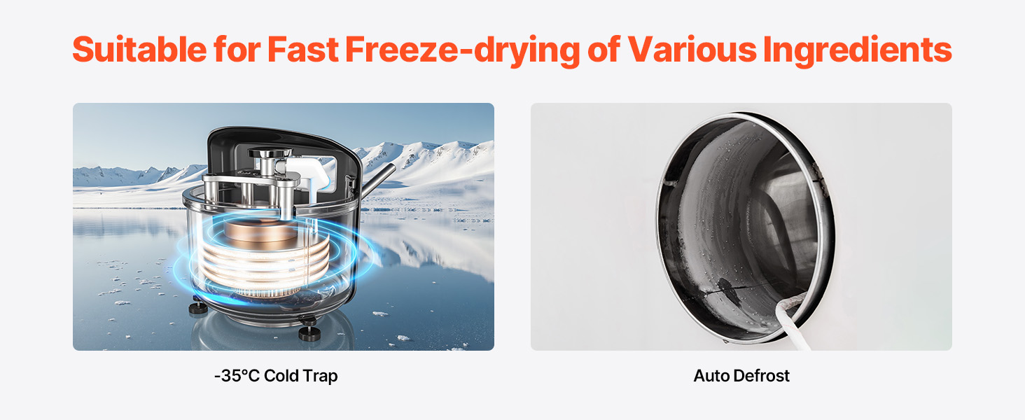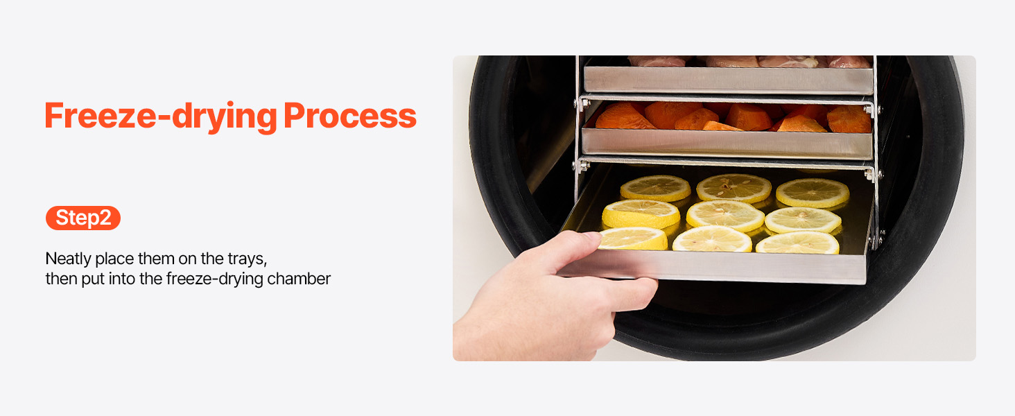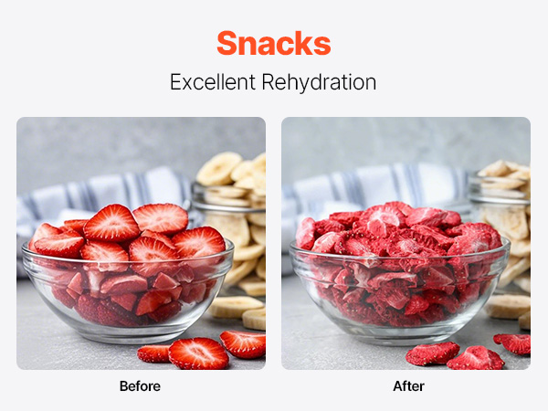 With a large capacity of 8.8-13.2 lbs (4-6 kg), this freeze dryer utilizes vacuum freeze-drying technology to preserve food. Compared to air-drying and dehydration methods, freeze-drying retains the color, flavor, taste, texture, and nutrition of the food in its natural state.