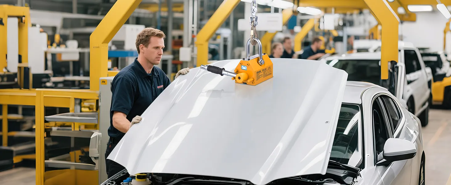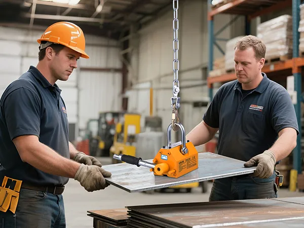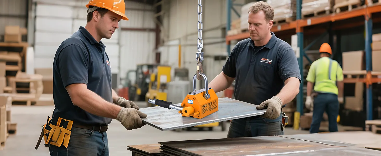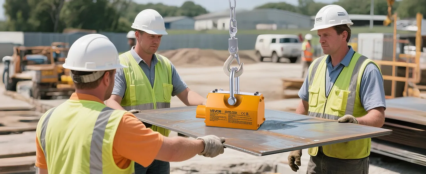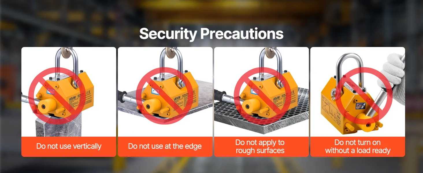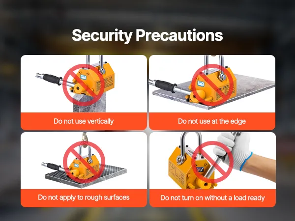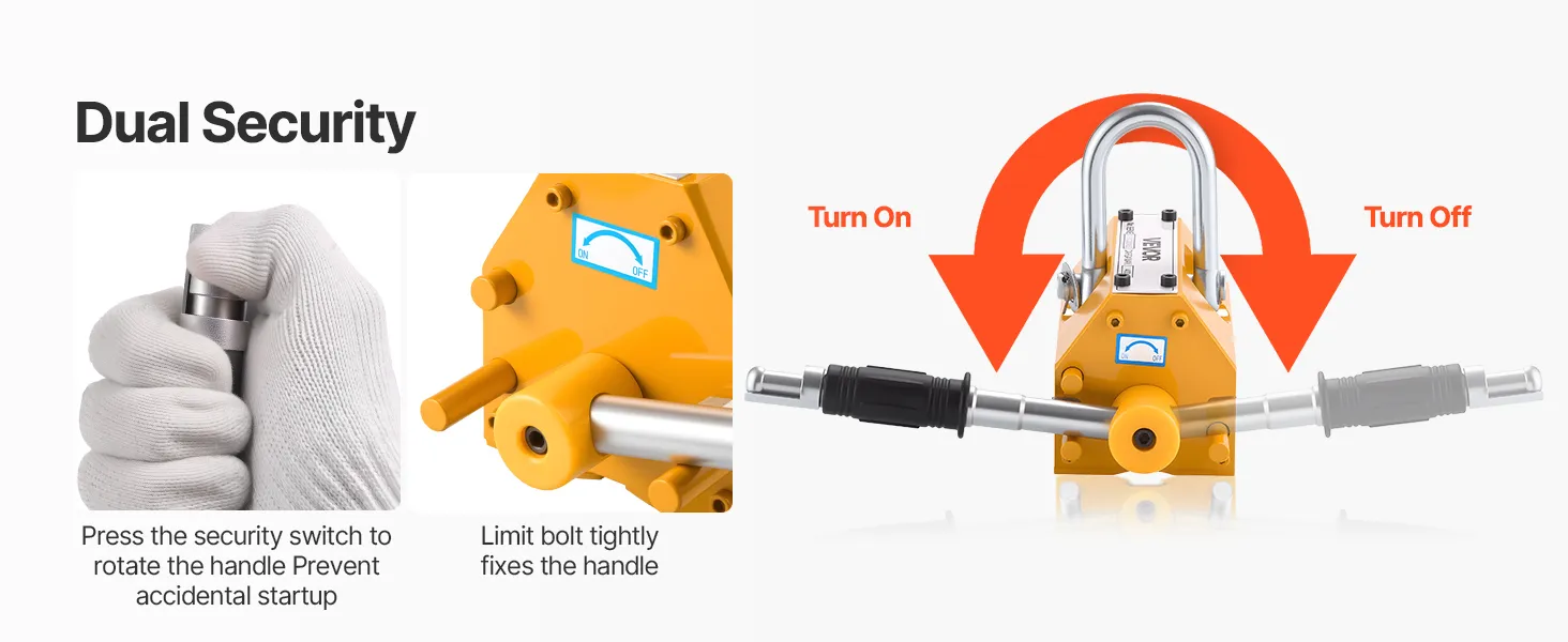 • Flexible Switch: The lever-style shaft design of the hoist magnet makes switching easier—turn left to engage the magnet, turn right to release. The built-in lock pin keeps the handle securely in place.