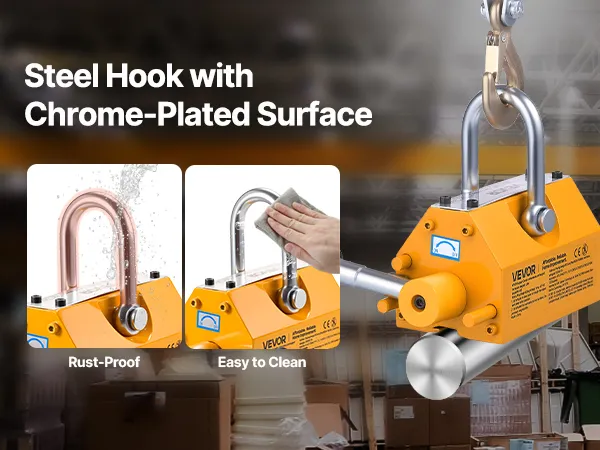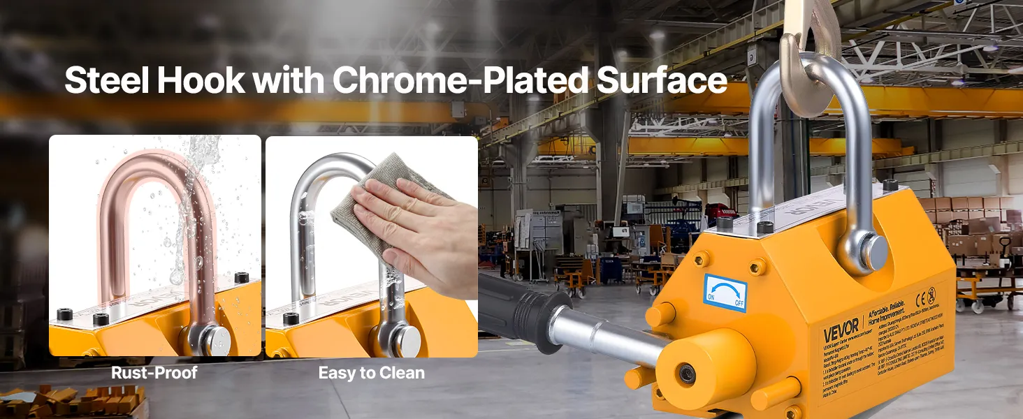• Chrome-Plated Hook: The heavy-duty hook of the magnetic lifter withstands bending or breaking. Its chrome finish boosts rust resistance and makes cleanup easier. A pair of protective gloves is included