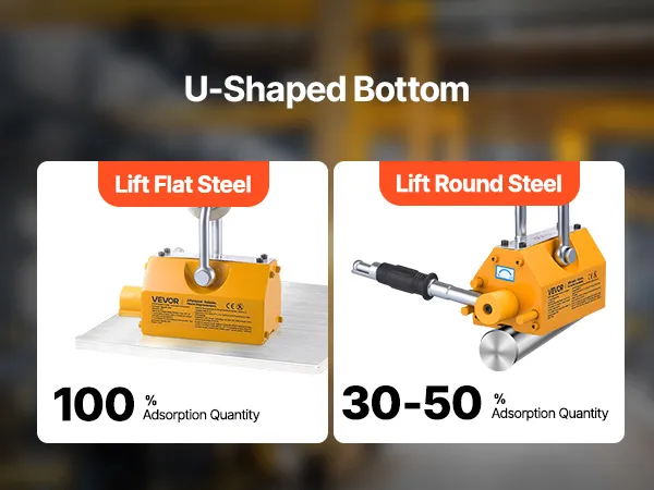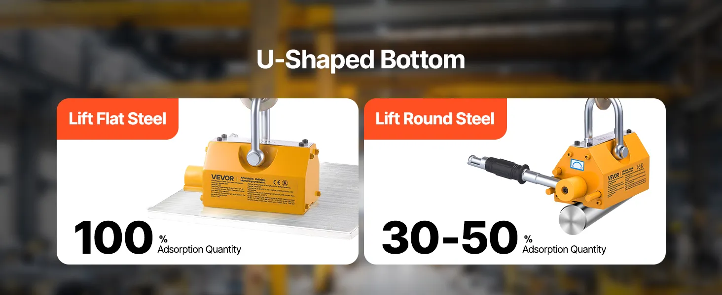 • U-Shaped Base: The U-shaped bottom is designed to lift flat sheets and round steel, expanding its range of use. The magnet for hoist is ideal for lifting steel plates, rods, blocks, and pipes in the power, mining, transport, and engineering fields