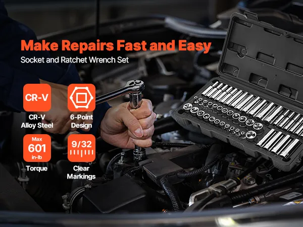 • Built to Last: Forged from high-strength CR-V alloy steel and heat-treated to HRC42-48, this socket set provides superior impact resistance and long-lasting durability. The chrome-plated finish withstands rust and ensures long-lasting use
